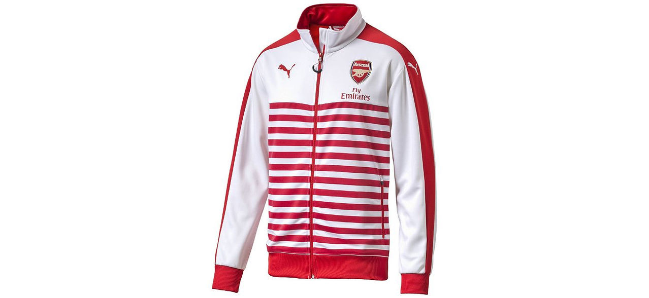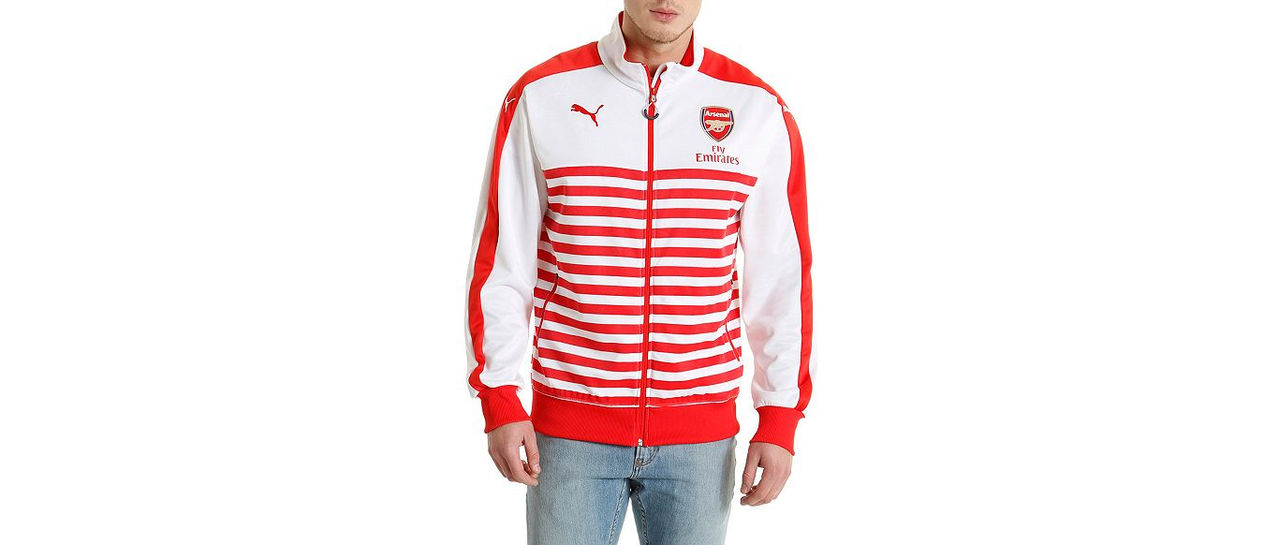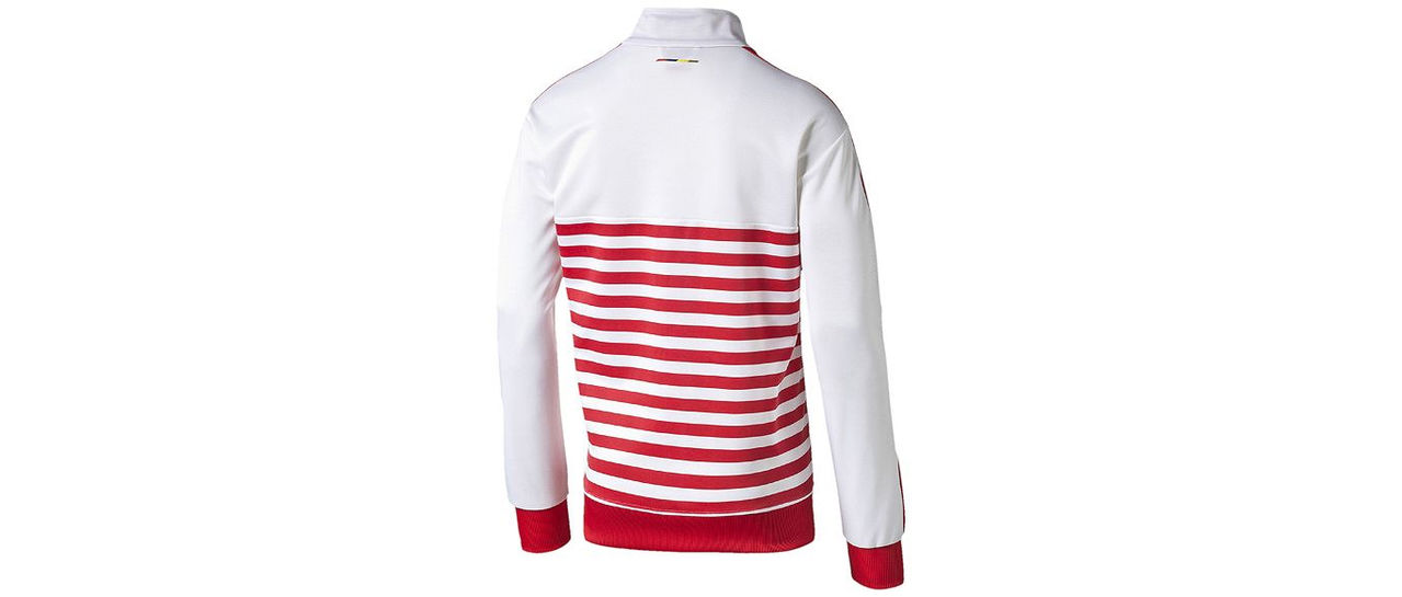 Since its debut in 1968, the PUMA T7 track jacket has been worn by athletes, rock stars, and artists, and forever maintains its form-fitting retro style and signature stripe. The hooped stripes on this Arsenal Football Club version pay tribute to the legendary tactician Herbert Chapman, AFC’s manager from 1925 - 1934 and one of the modernisers of English football. The hoops are a direct link back to the on-pitch socks and combine traditions of old with modern flair to make this anthem jacket a true classic.