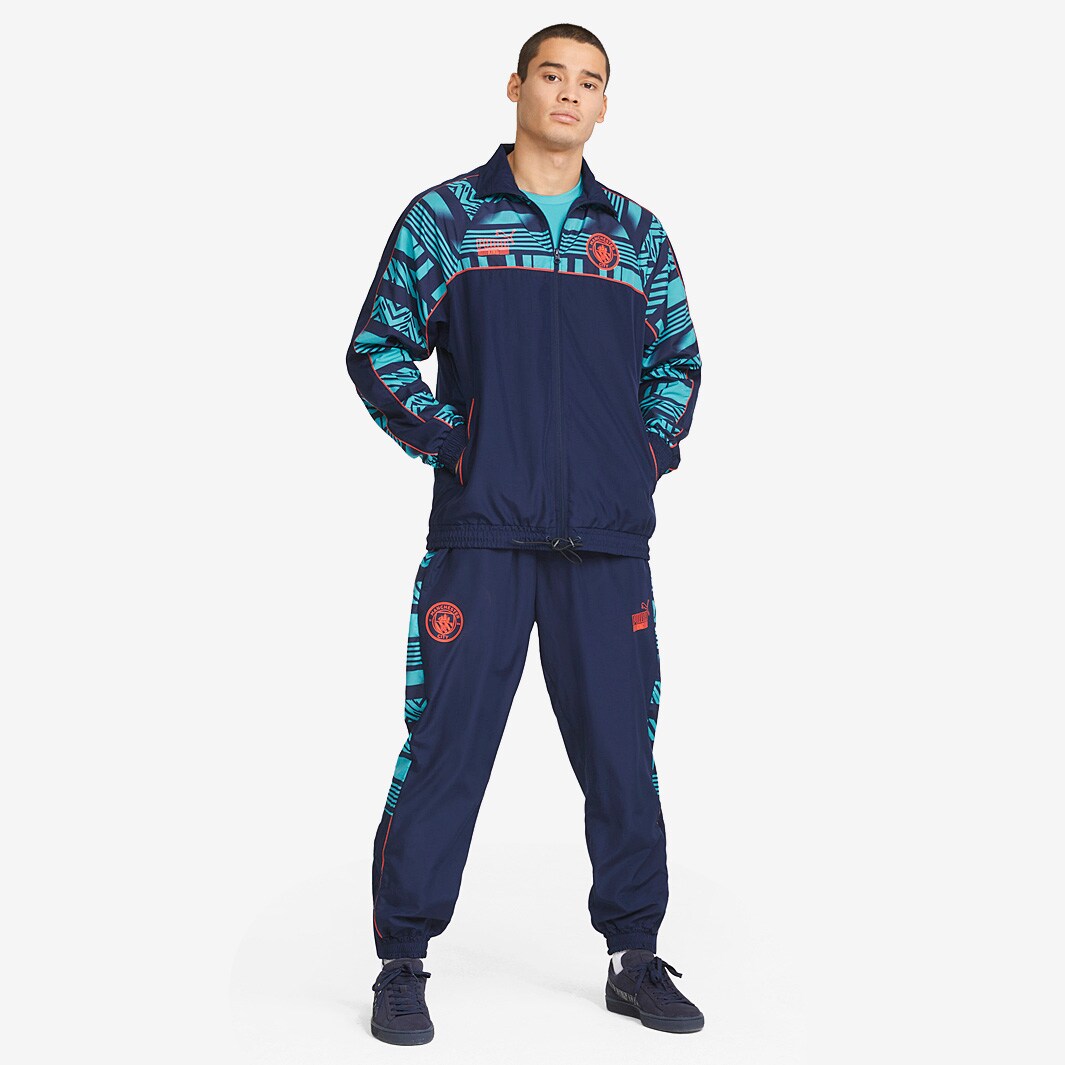 Support City on the streets or the training pitch with the PUMA 21/22 Manchester City FtblHeritage Track Jacket in Peacoat navy/Scuba Blue.