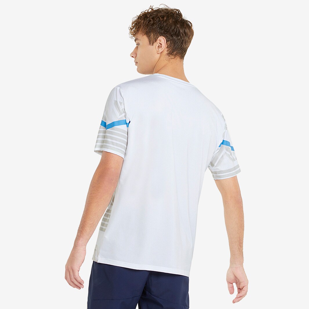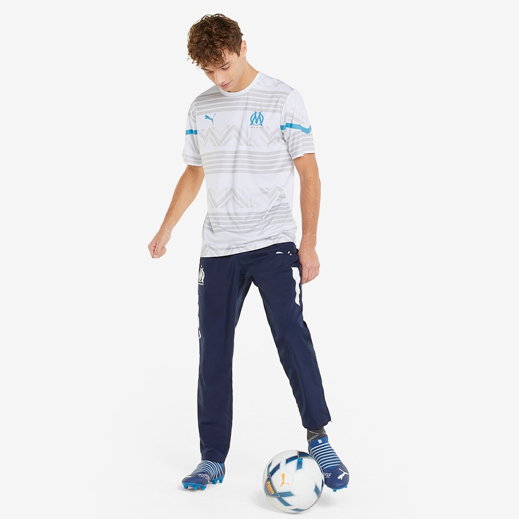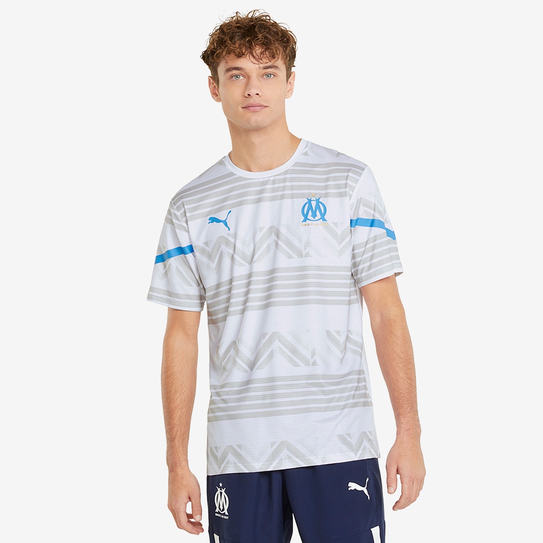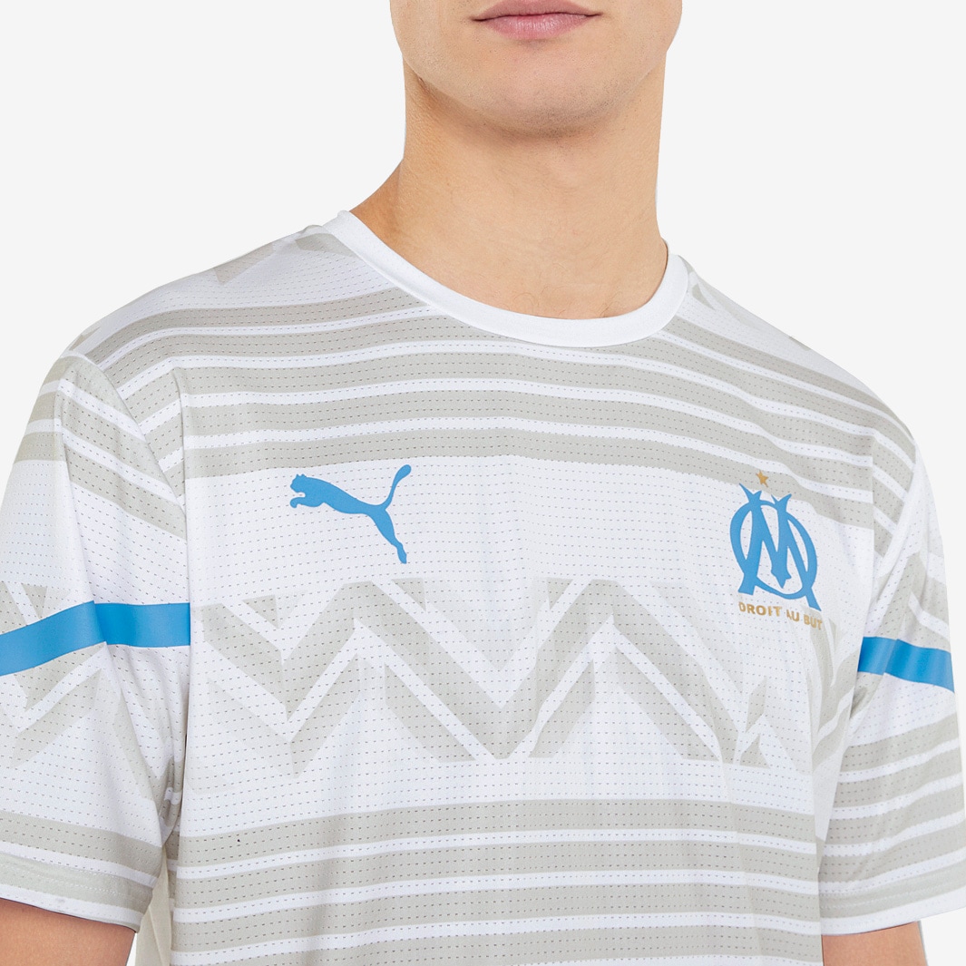 Look the part as you warm up with the PUMA Olympique Marseille 21/22 Pre Match Shirt in Puma White/Bleu Azur, as worn by the pro players ahead of a game.
