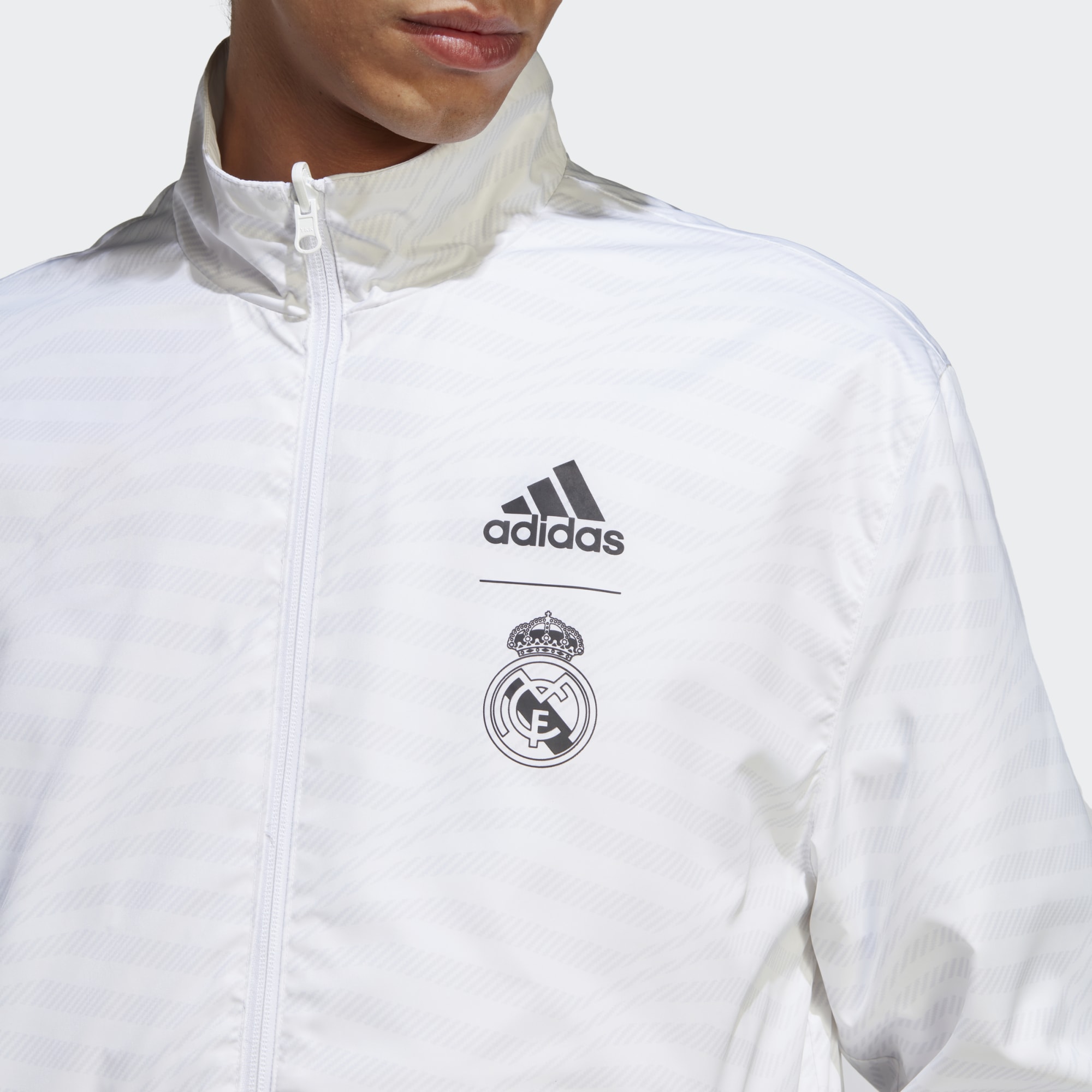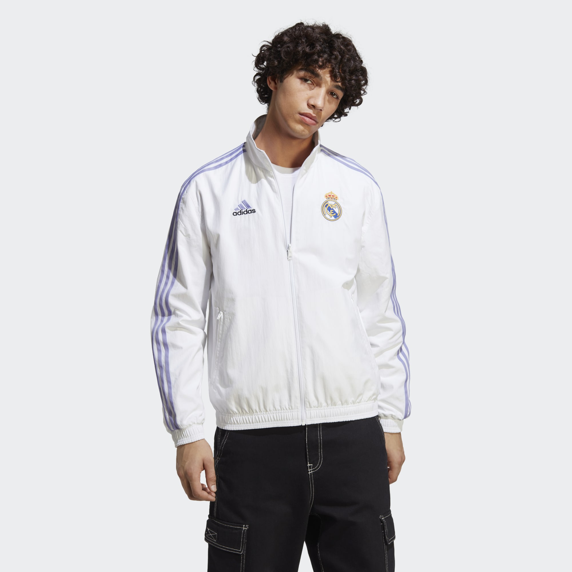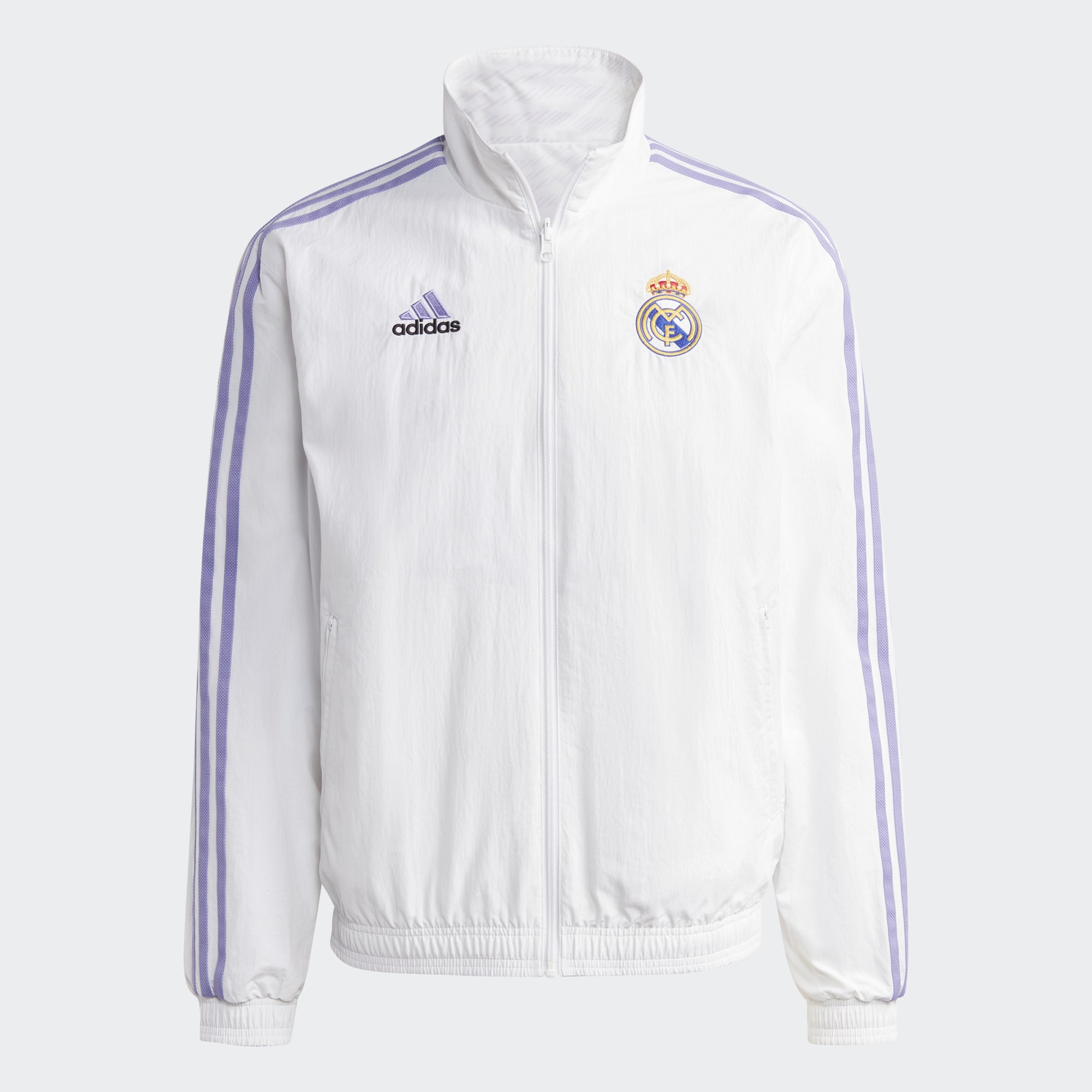 Inspired by their new home. When the top Real Madrid players zip up before heading out onto the pitch, this adidas Real Madrid Anthem Jacket offers a choice of looks.