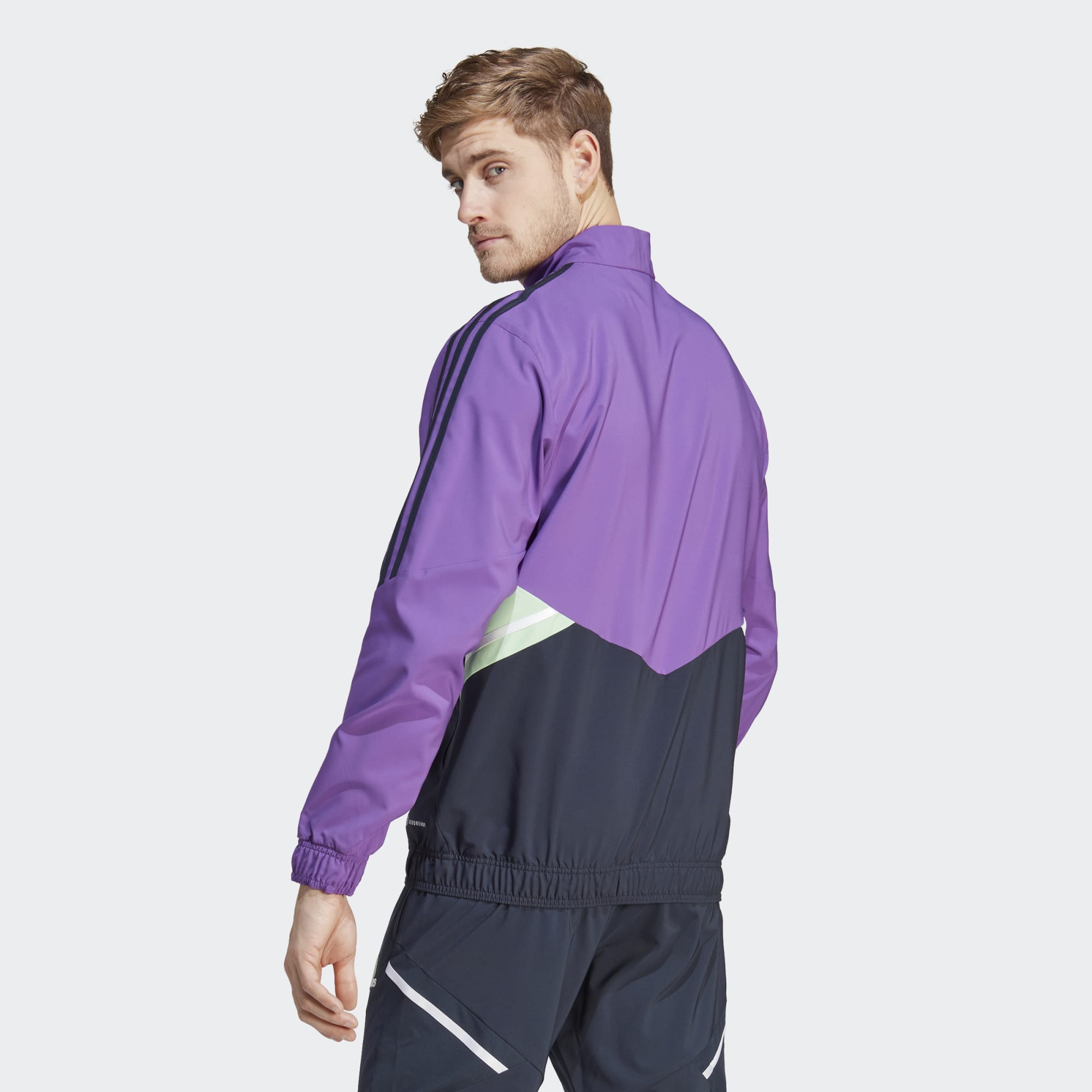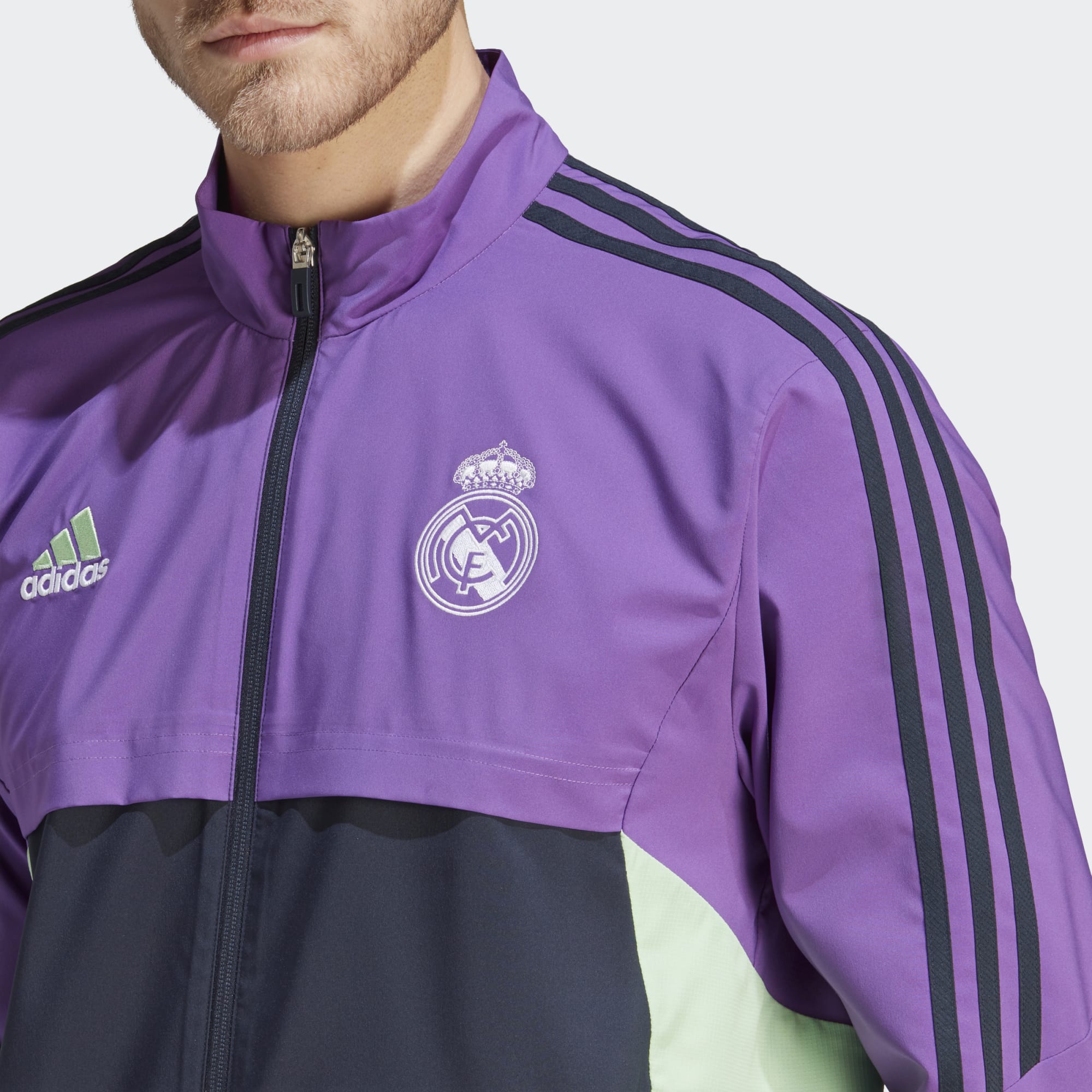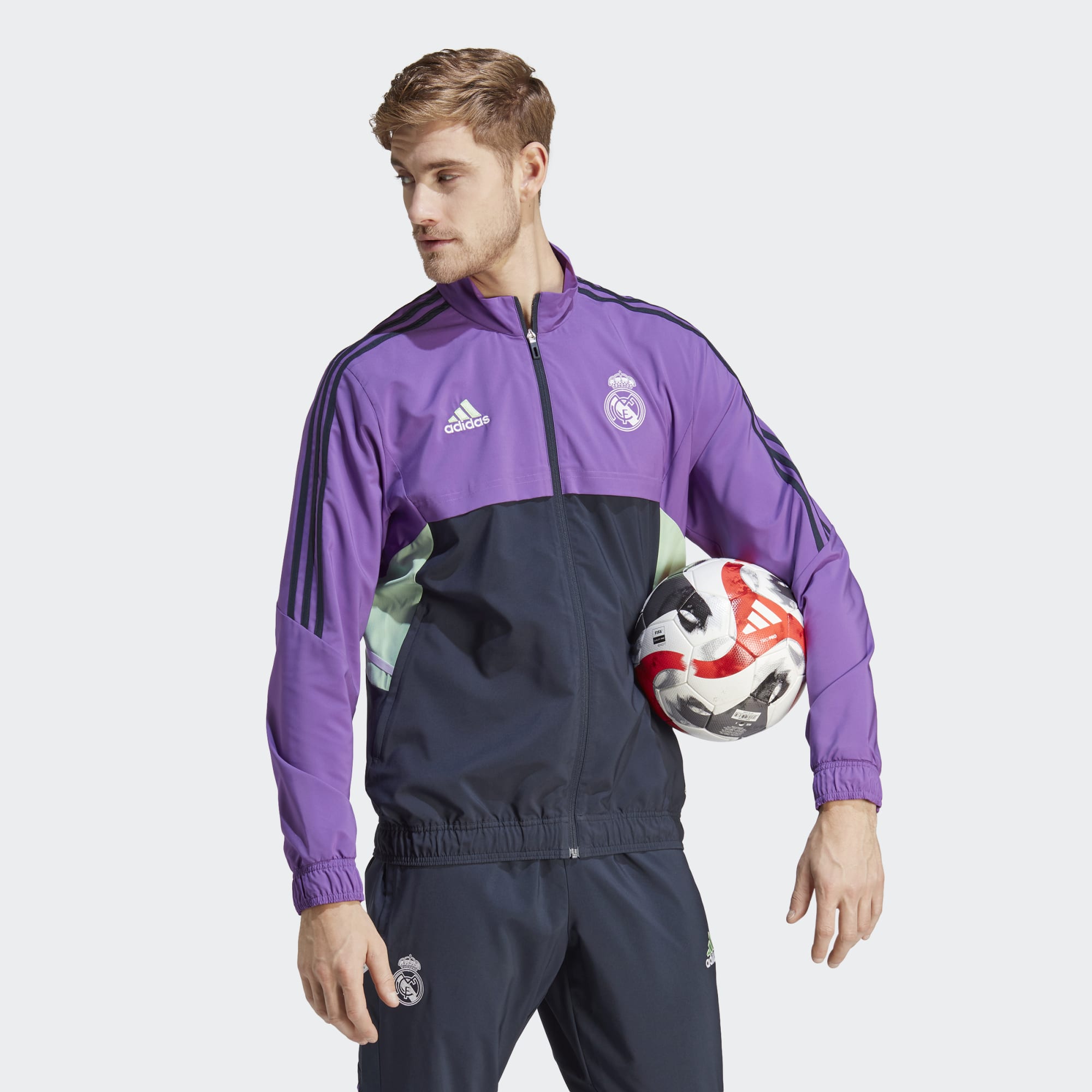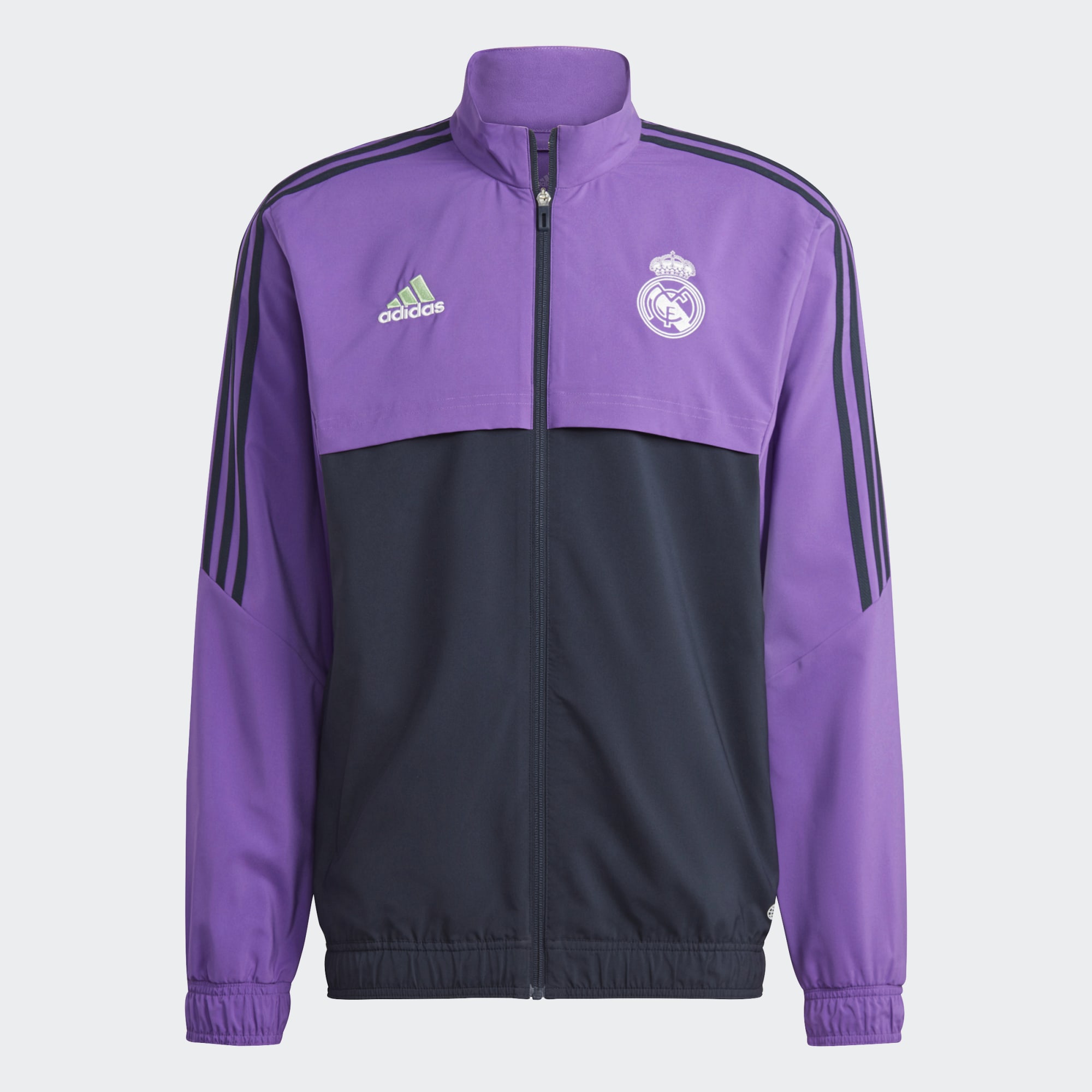 This adidas Real Madrid Condivo 22 Presentation Track Top in Active Purple/Night Navy puts your Real Madrid loyalty on plain show.