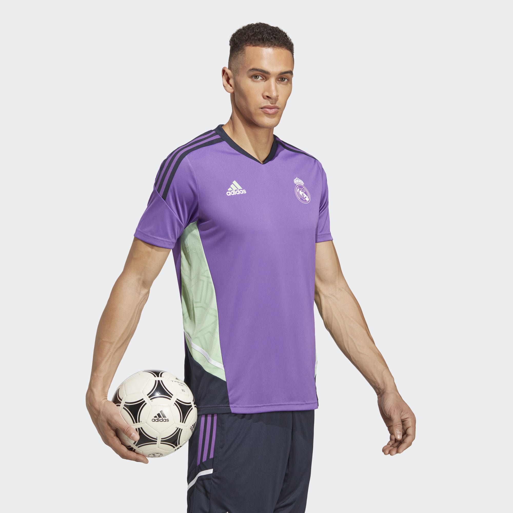 adidas created Real Madrid's Condivo 22 training kit with movement in mind. This Real Madrid Condivo 22 Training Jersey in Active Purple keeps you fresh and focused with moisture-wicking AEROREADY and a cut that supports intensive activity.