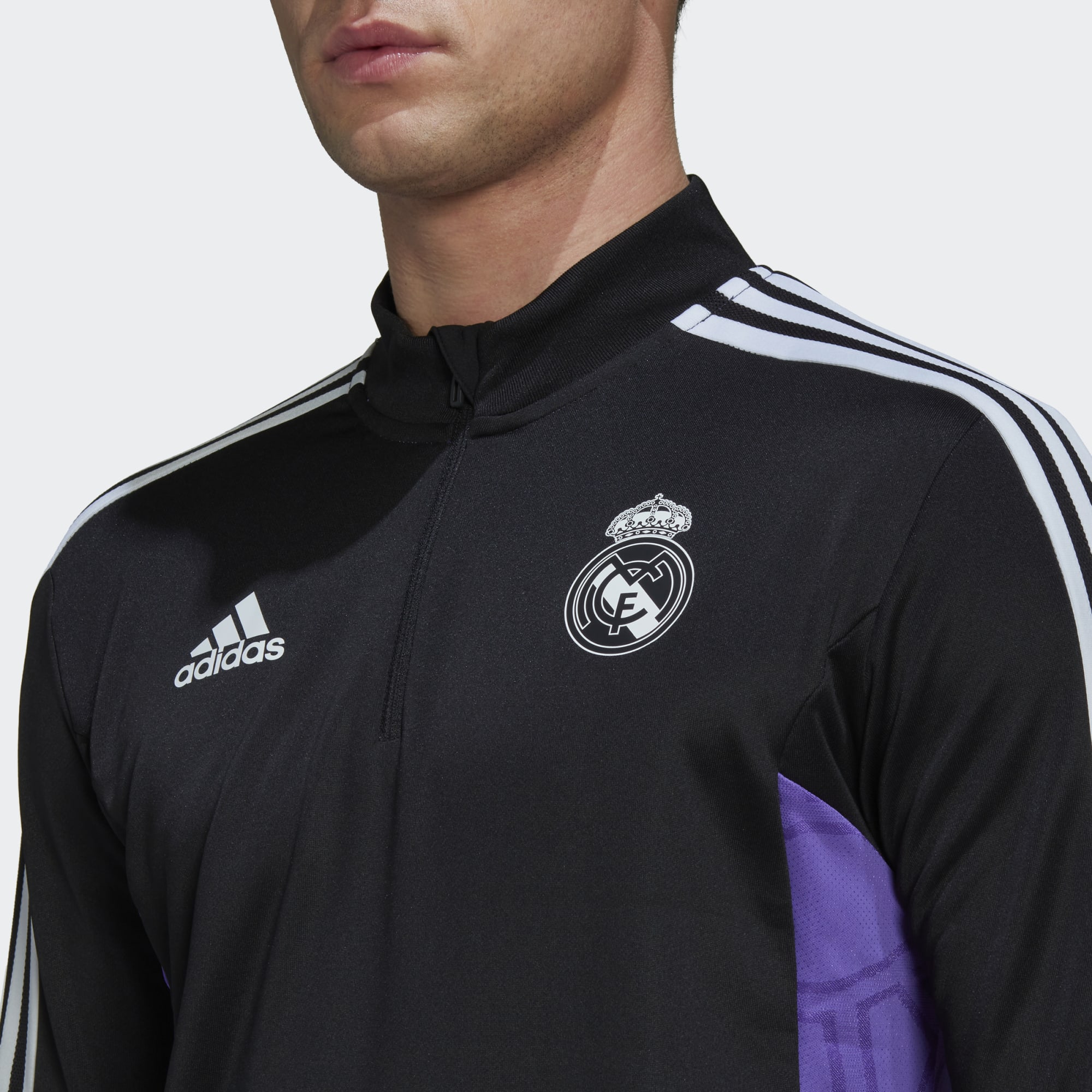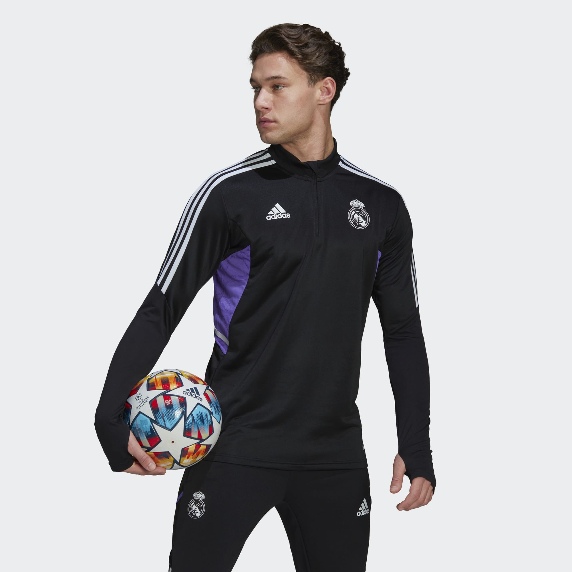 This Real Madrid football training top has AEROREADY to keep you dry, while thumbholes on the cuffs and ribbed elastic on the arms ensure a snug, warm fit.