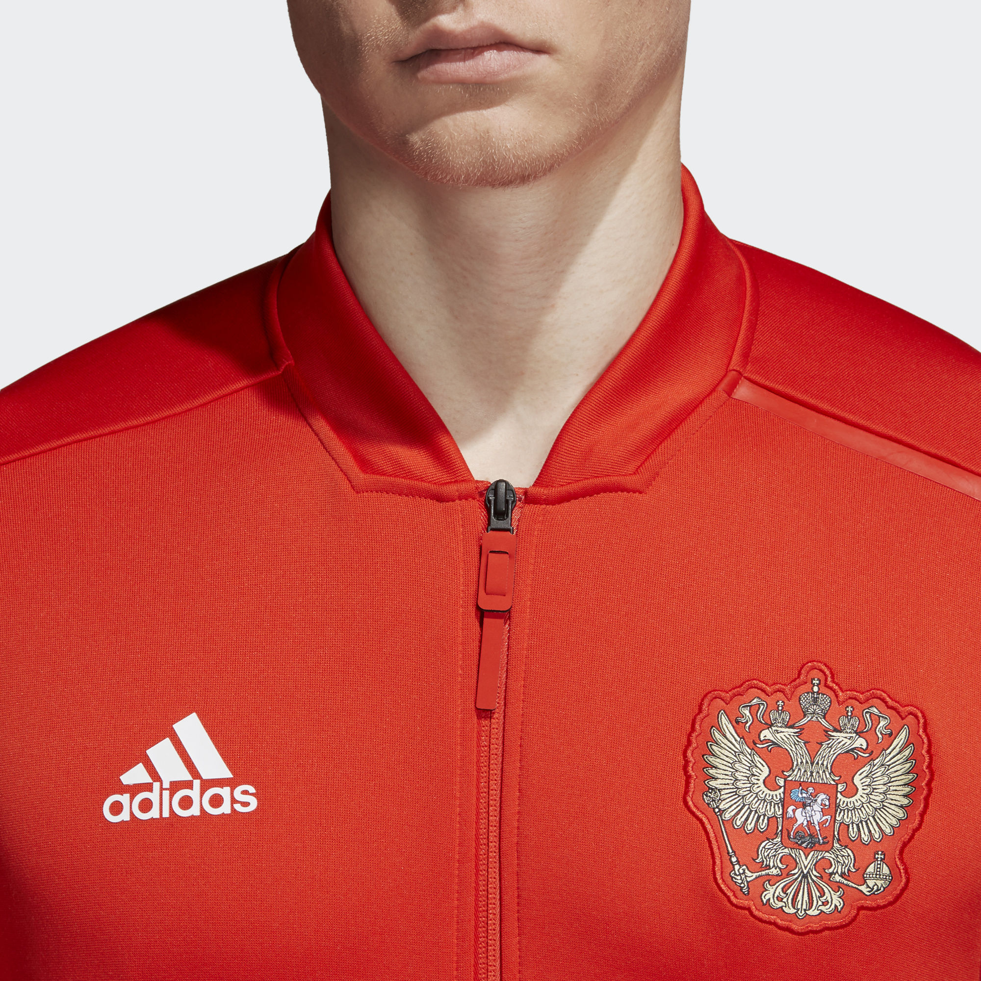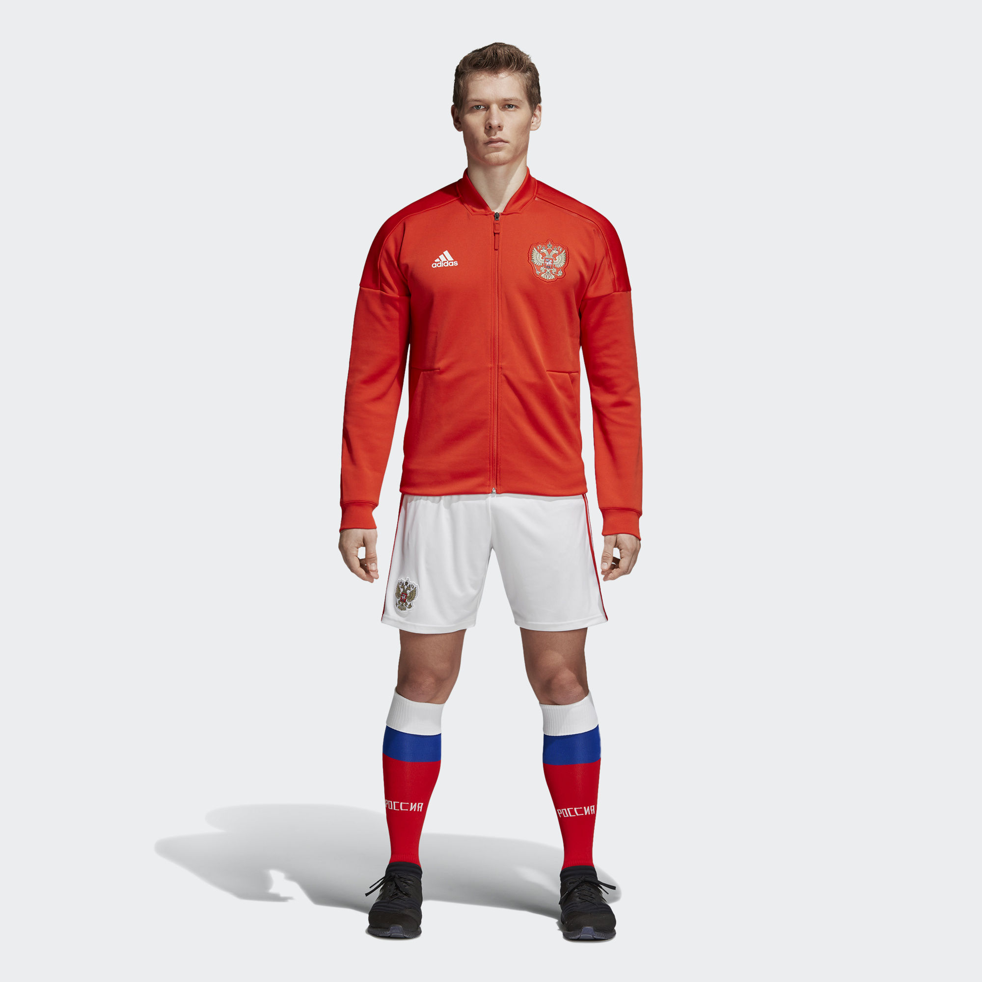 Honour the Russian national team in this Russia 2018 Adidas Z.N.E. Jacket. Clean and simple, it has a double-layer baseball collar and a full zip. A woven team badge on the chest and a rubber-print "Россия" on the upper back remind you of what matters most.