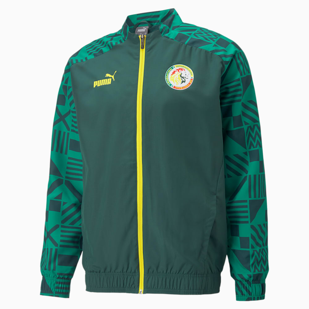 Puma released this lightweight Senegal 22/23 prematch jacket in June Bug/Pepper Green, designed to keep you warm and comfortable as you prepare for kick-off.