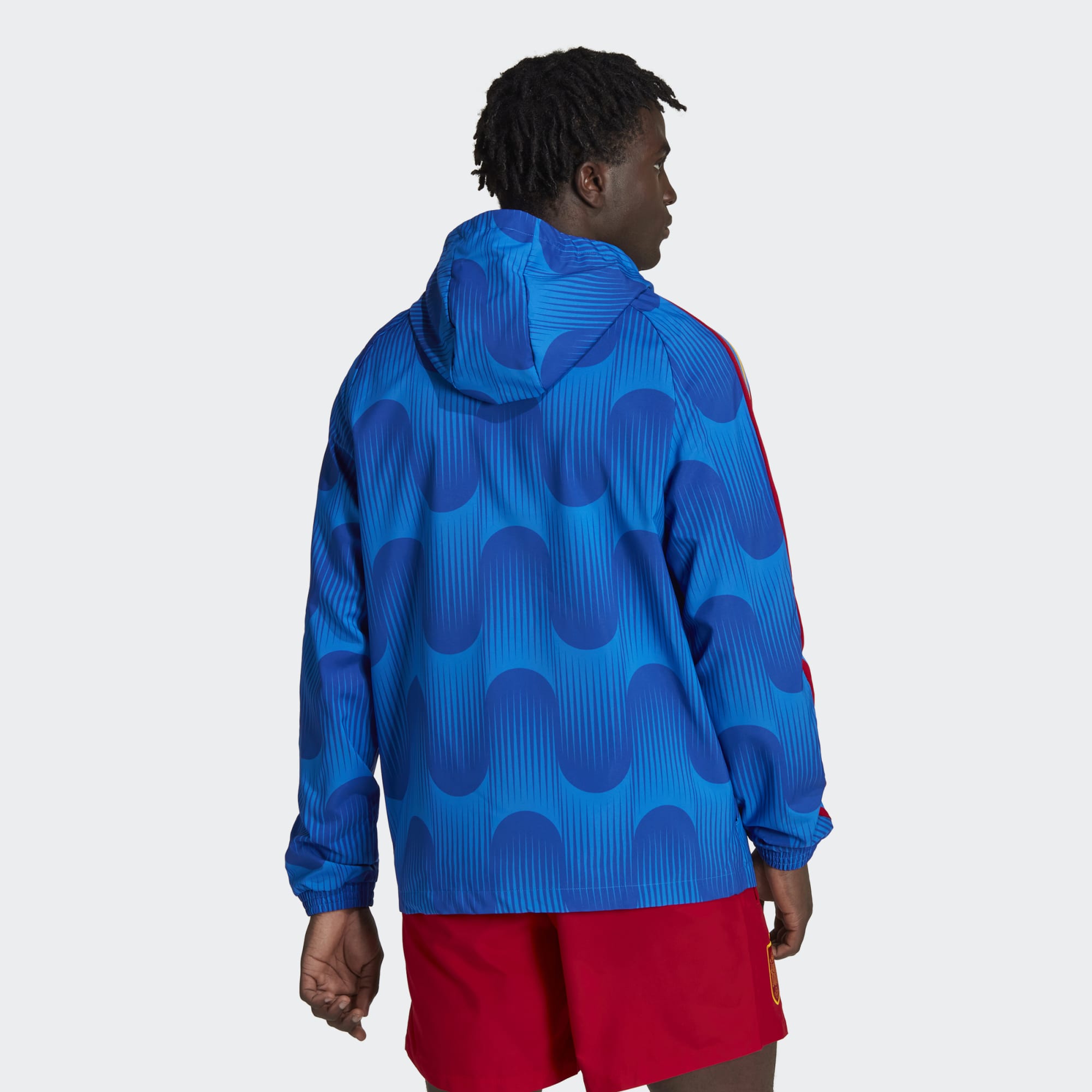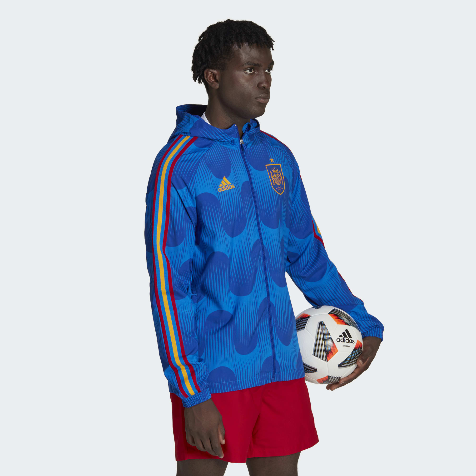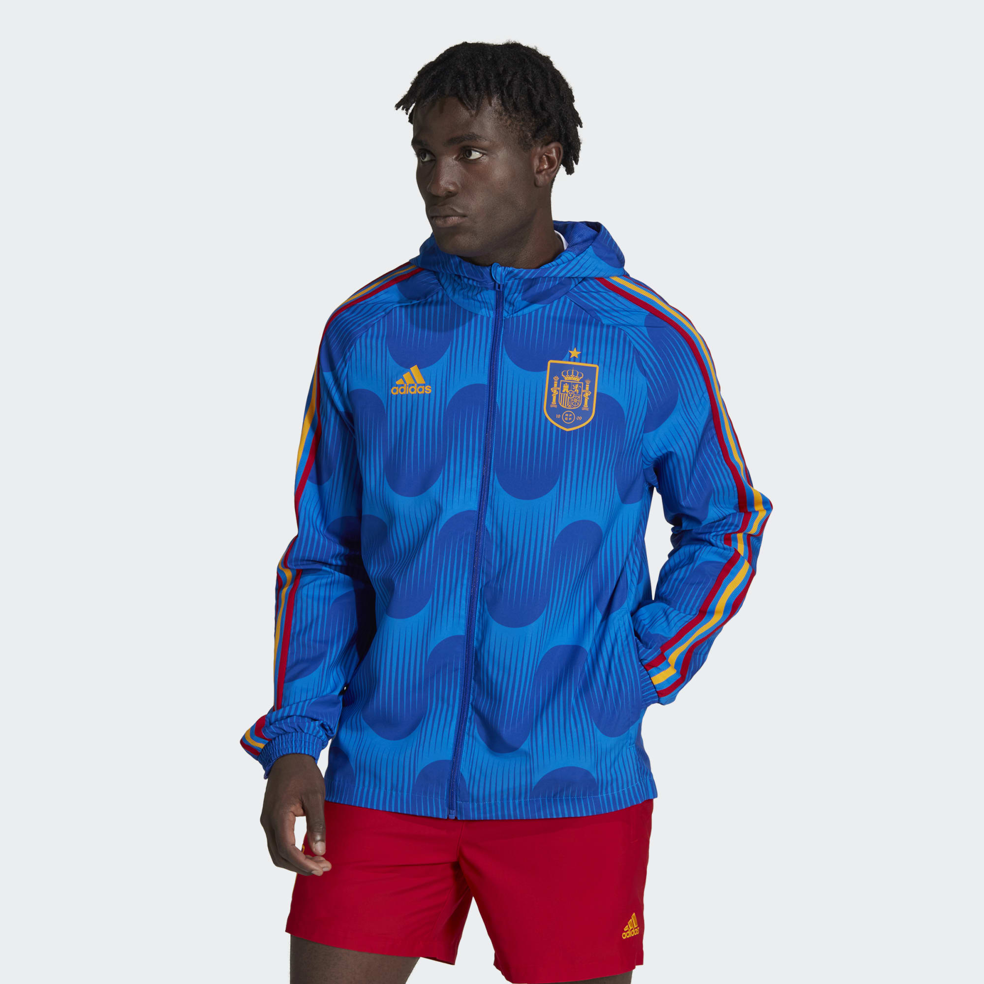 This adidas football windbreaker borrows the art deco-style design of Spain's away jersey to make a real statement.