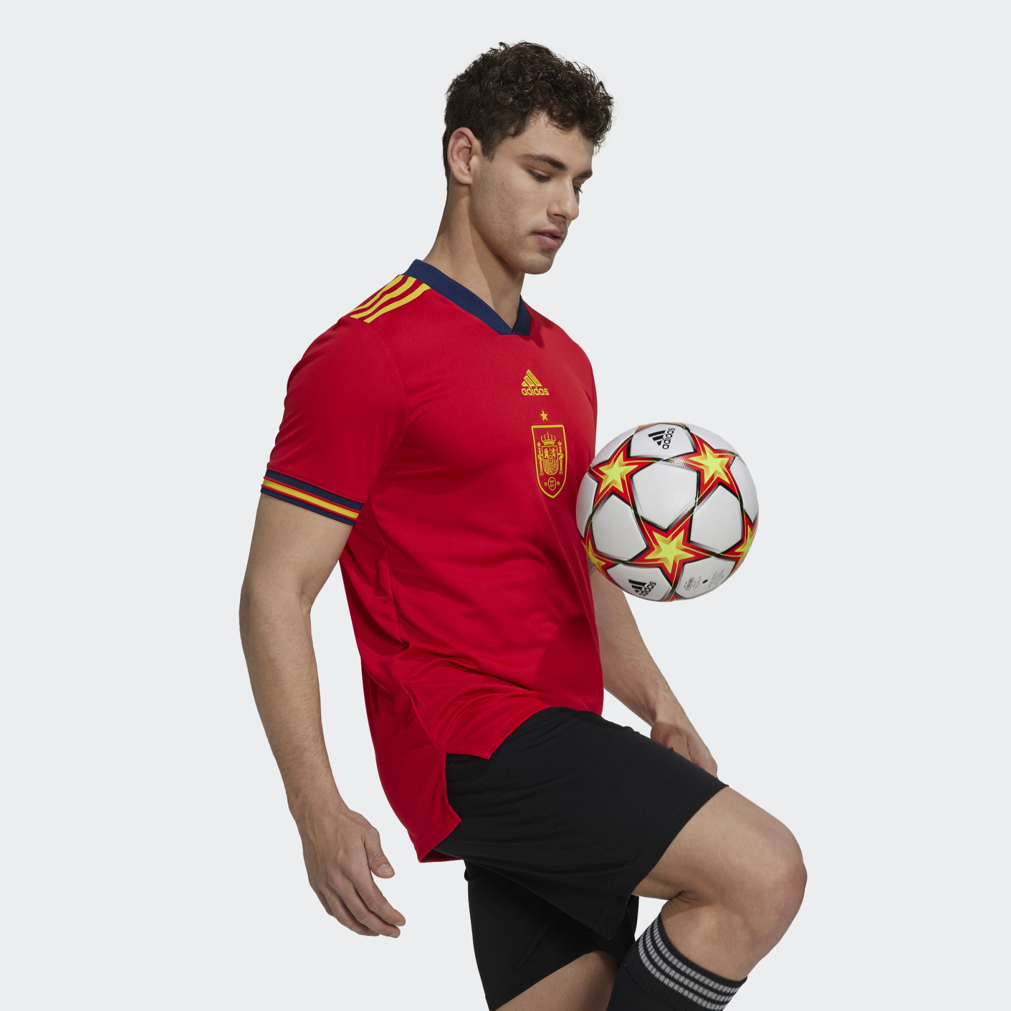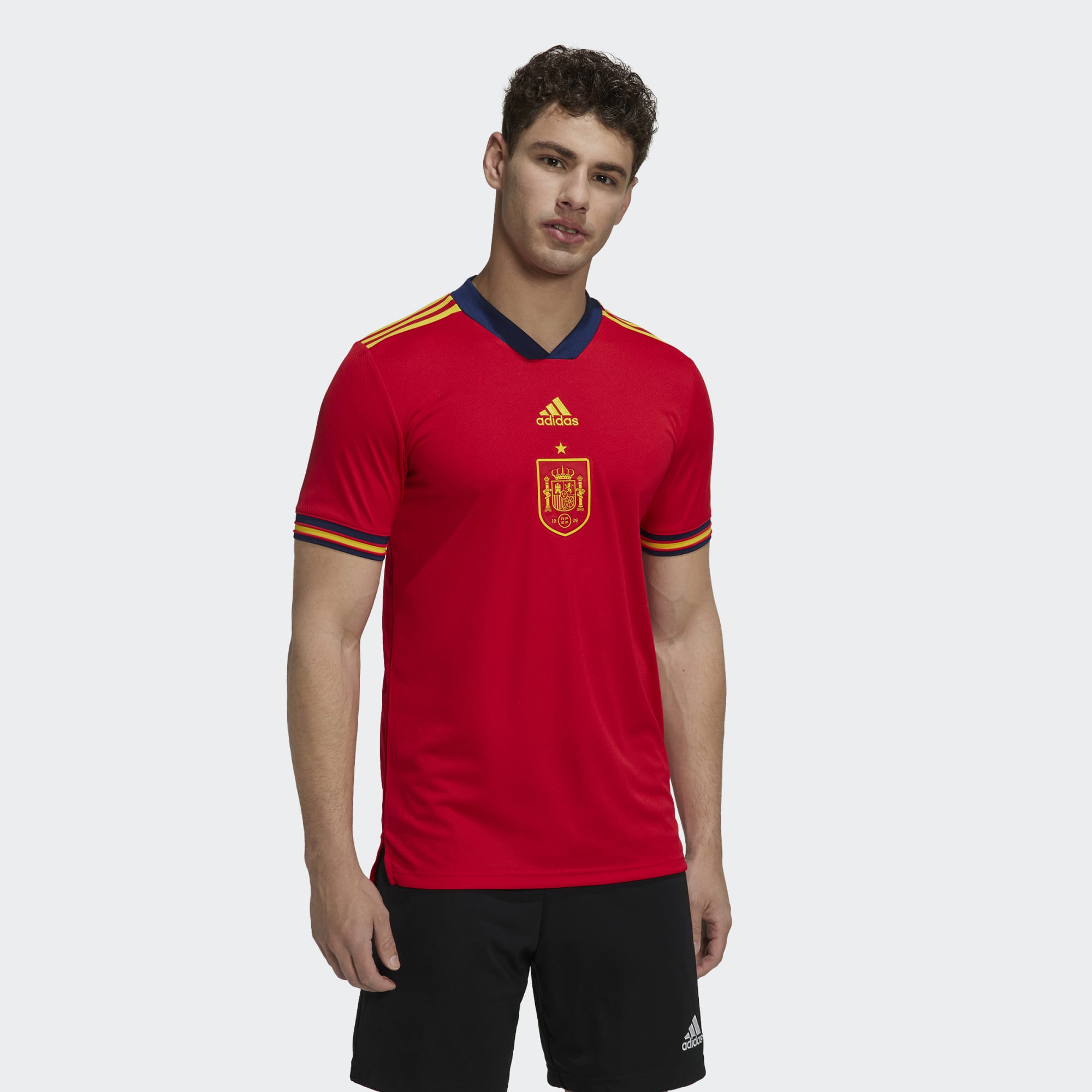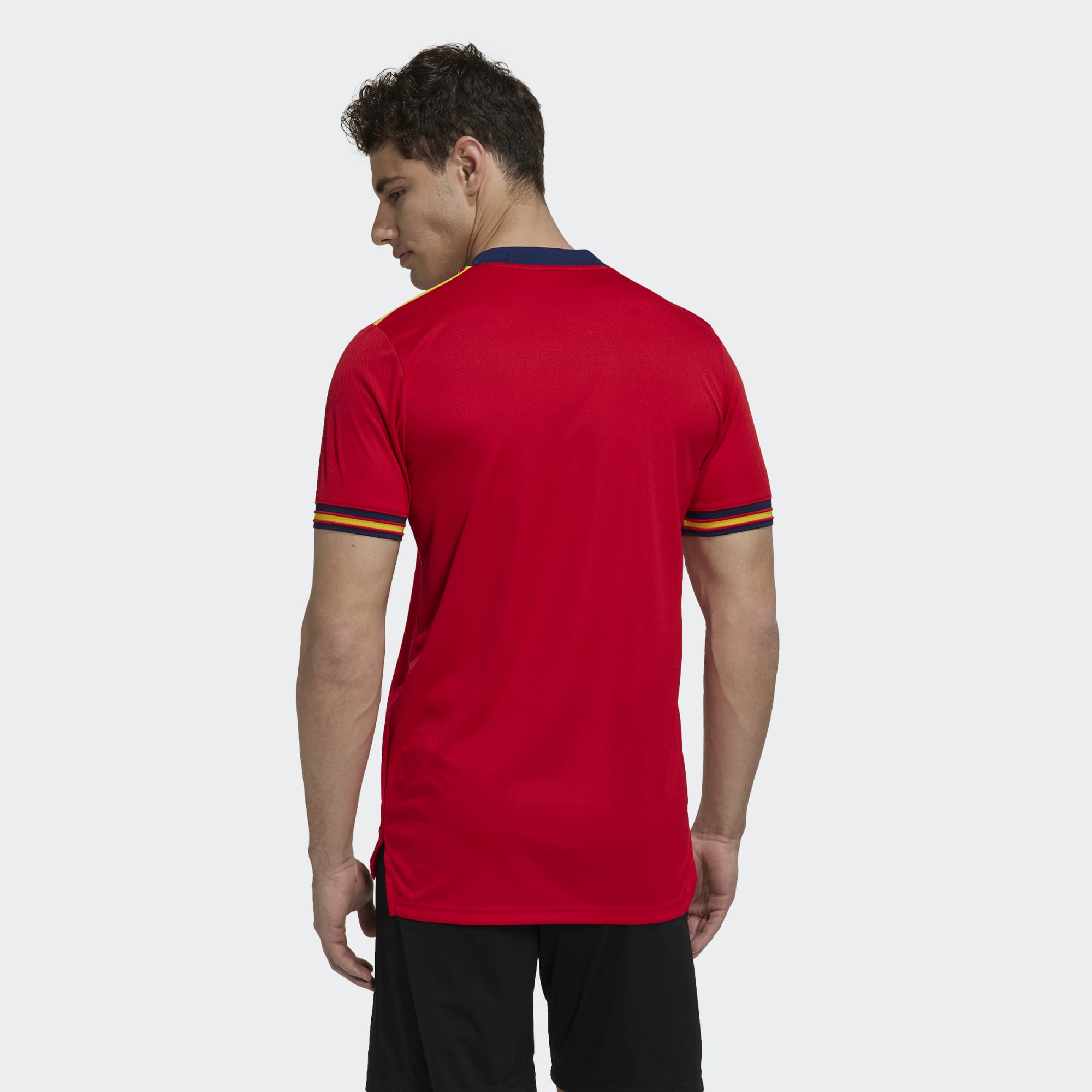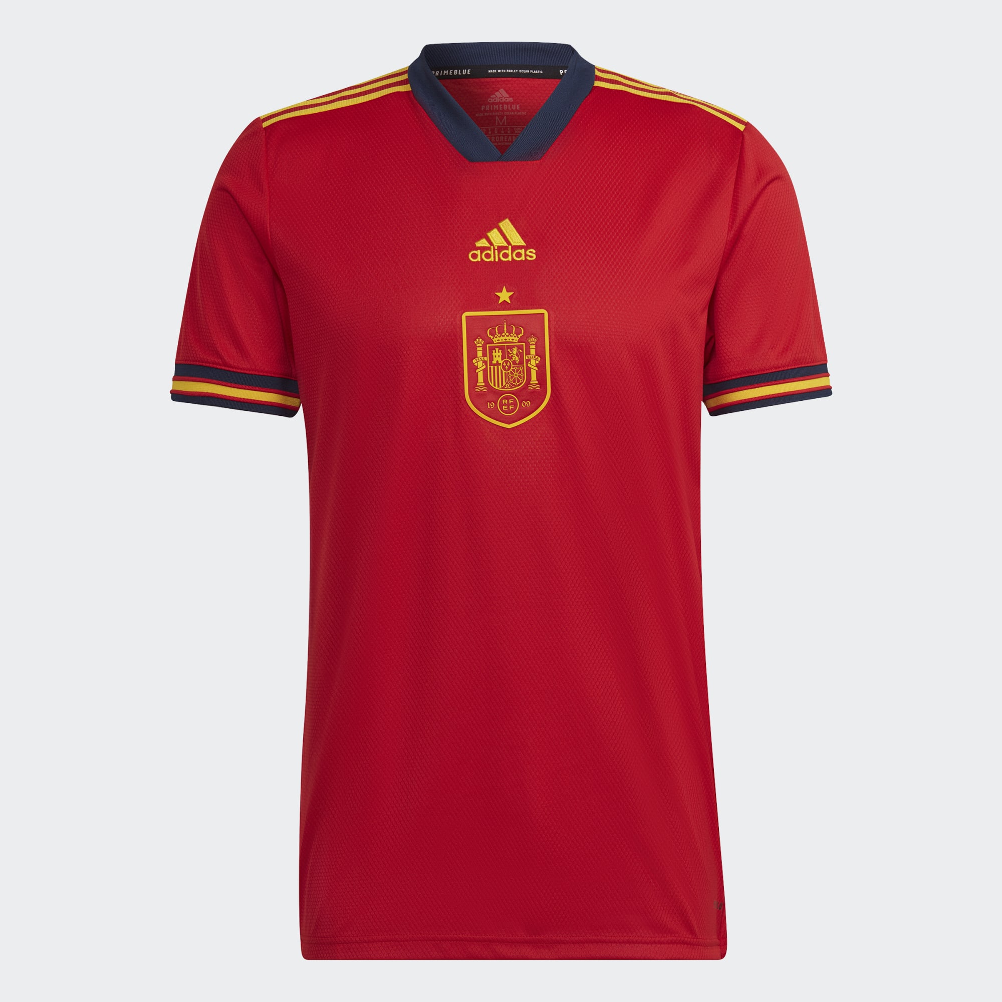 That's why this Spain football jersey was created using Parley Ocean Plastic. Its new hem shape teams up with moisture-absorbing AEROREADY to ensure you move with confidence.