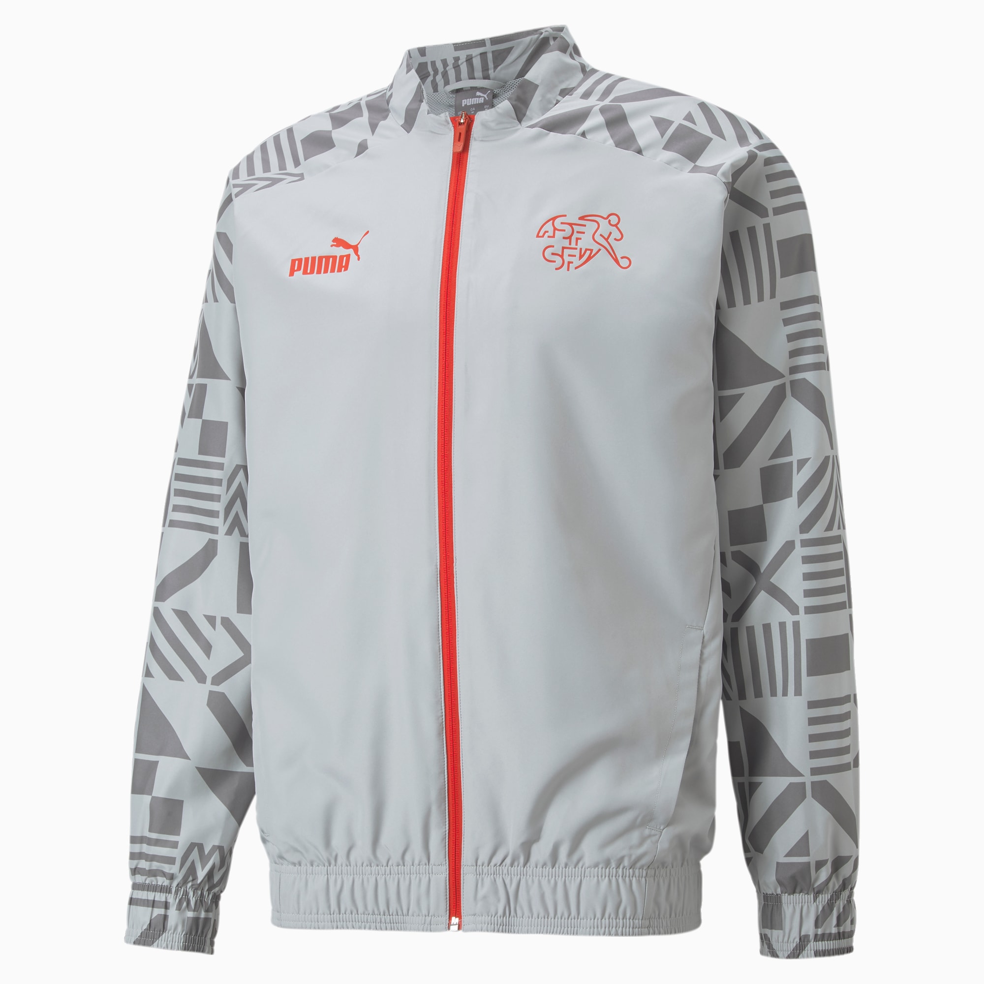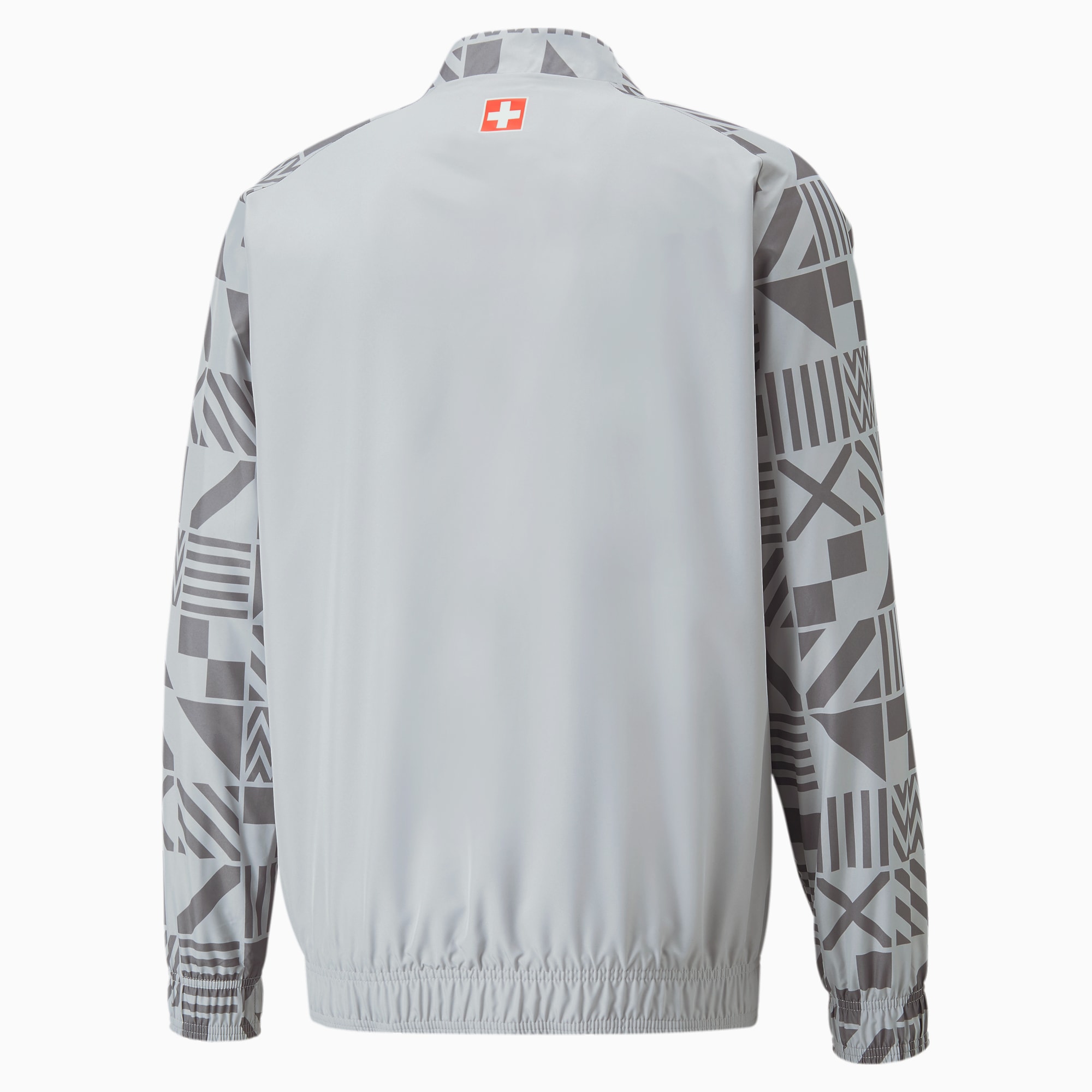 Puma released this lightweight Switzerland 22/23 prematch jacket in Harbor Mist/Smoked Pearl, designed to keep you warm and comfortable as you prepare for kick-off.