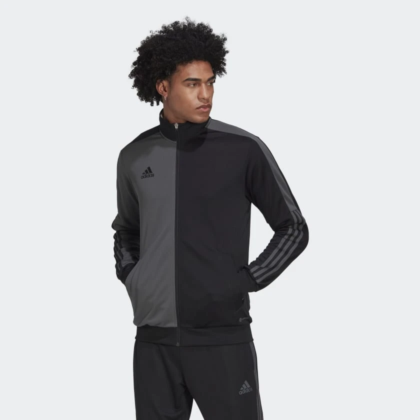 The split design flashes one colour on the right side and another colour on the left. AEROREADY helps keep you dry whether you're wearing this jacket after training or before the big game.
