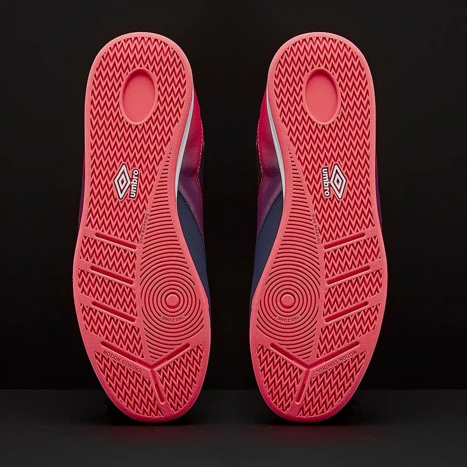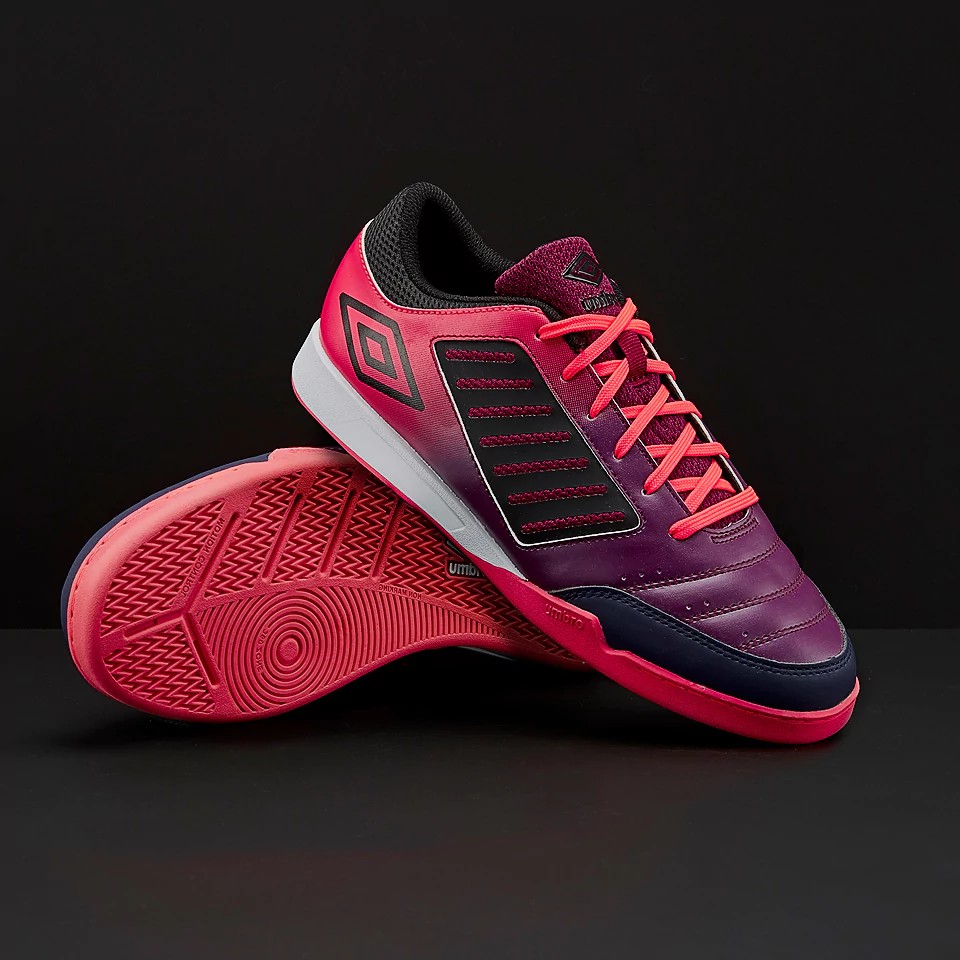The Umbro Chaleira League indoor football trainers use lightweight mesh quarters for enhanced breathability. They use a PU vamp with quilted stich detail and a low profile, non-making outsole. PU toe piece adds durability and flex grooves in the forefoot add grip.
