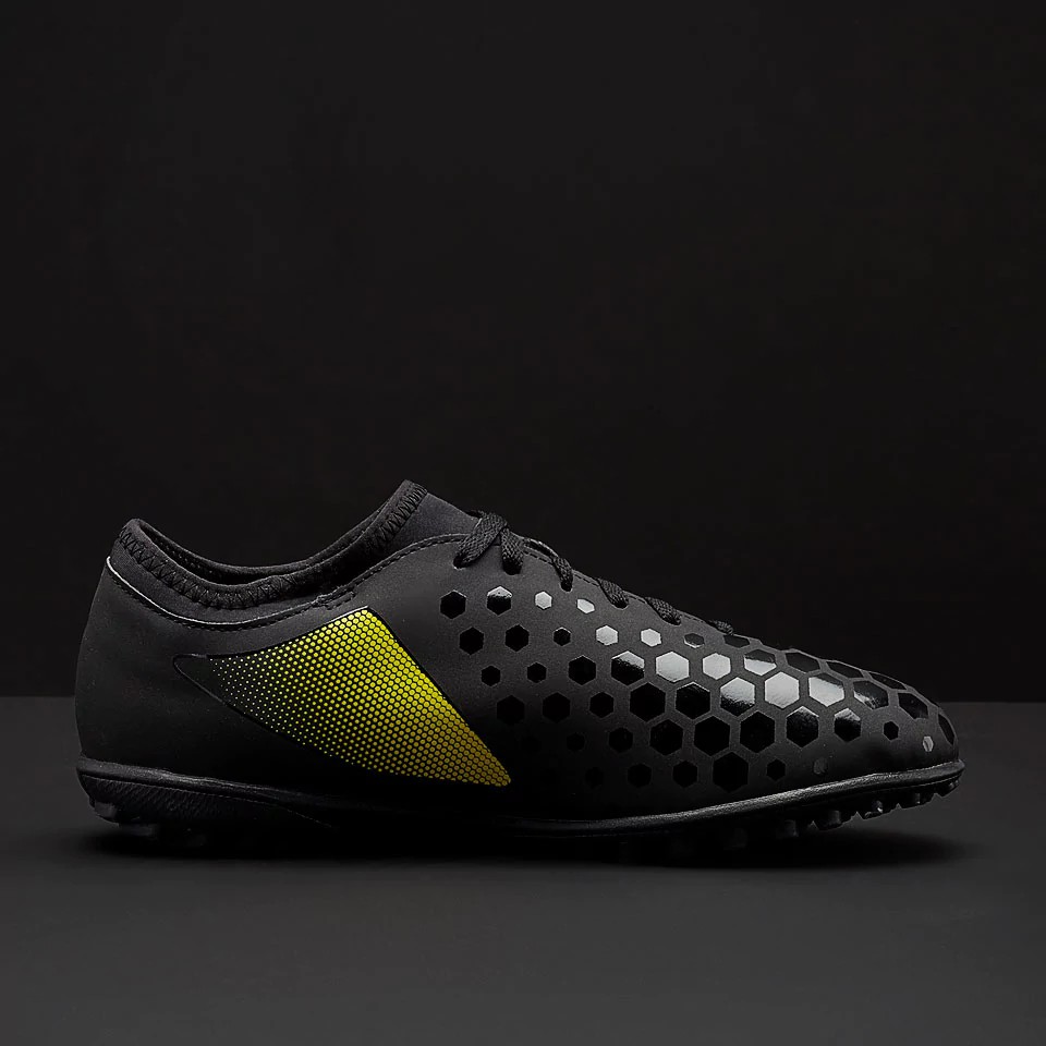 Integrated neoprene tongue for enhanced comfort. Rubber outsole provides optimum traction on artificial turf surfaces.