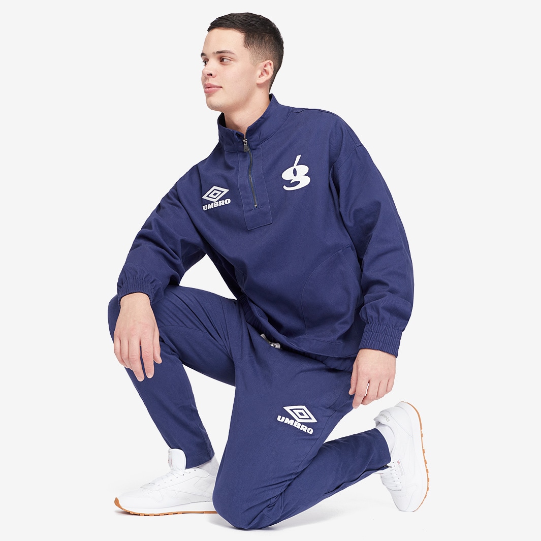 Stay warm and comfy from the pitch side to the festival floor in the Umbro x Gio-Goi Drill Smock in Patriot Blue.