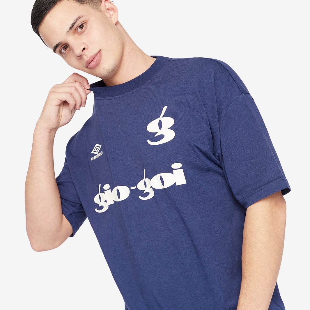 Train hard or relax even harder in a sleek sportswear style with the Umbro x Gio-Goi Logo Tee in Patriot Blue/Marshmallow.