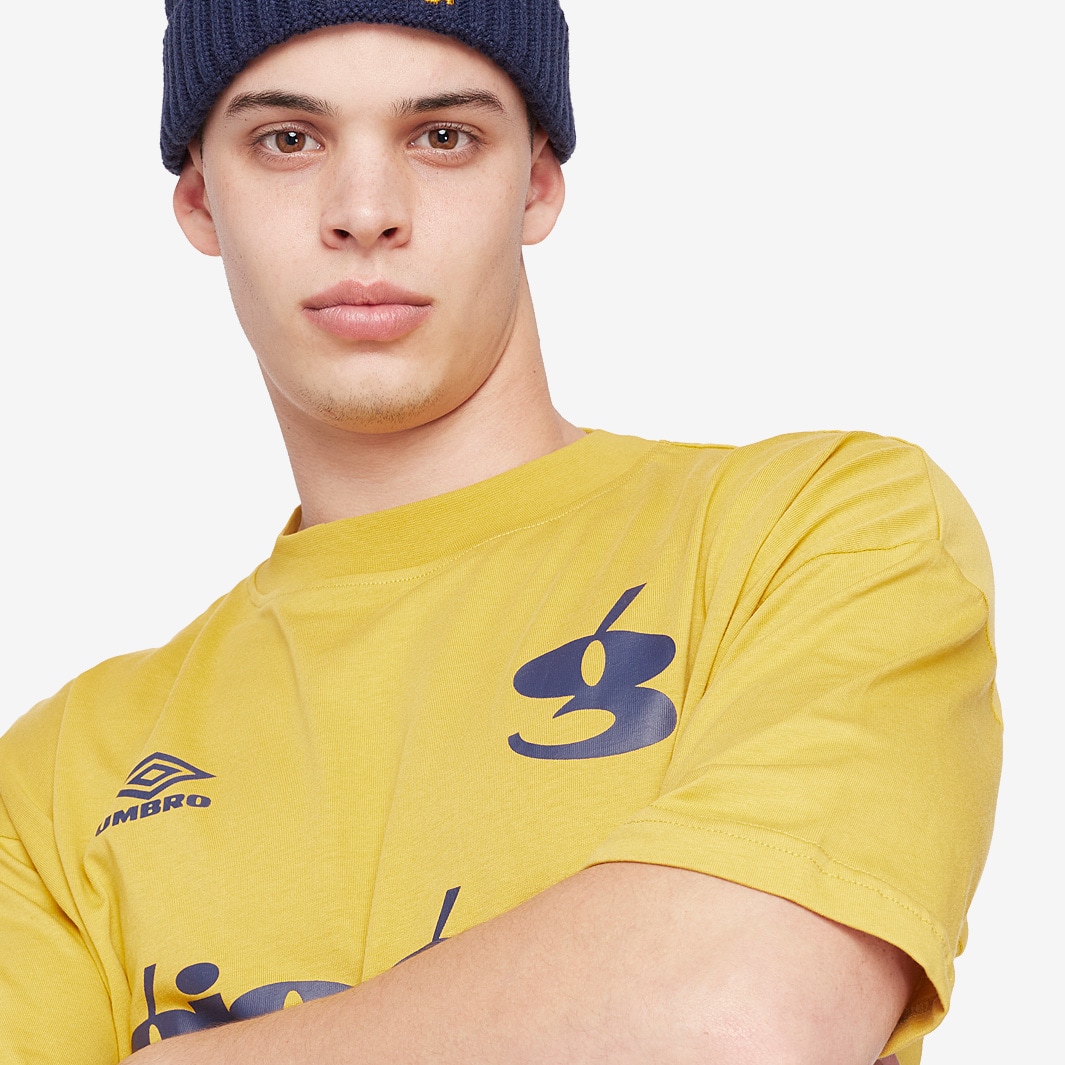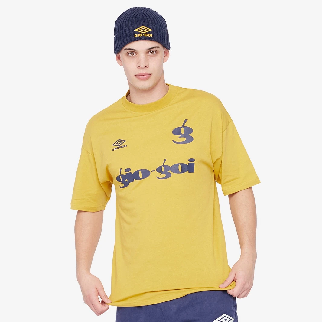 Train hard or relax even harder in a sleek sportswear style with the Umbro x Gio-Goi Logo Tee in Spicy Mustard/Patriot Blue.