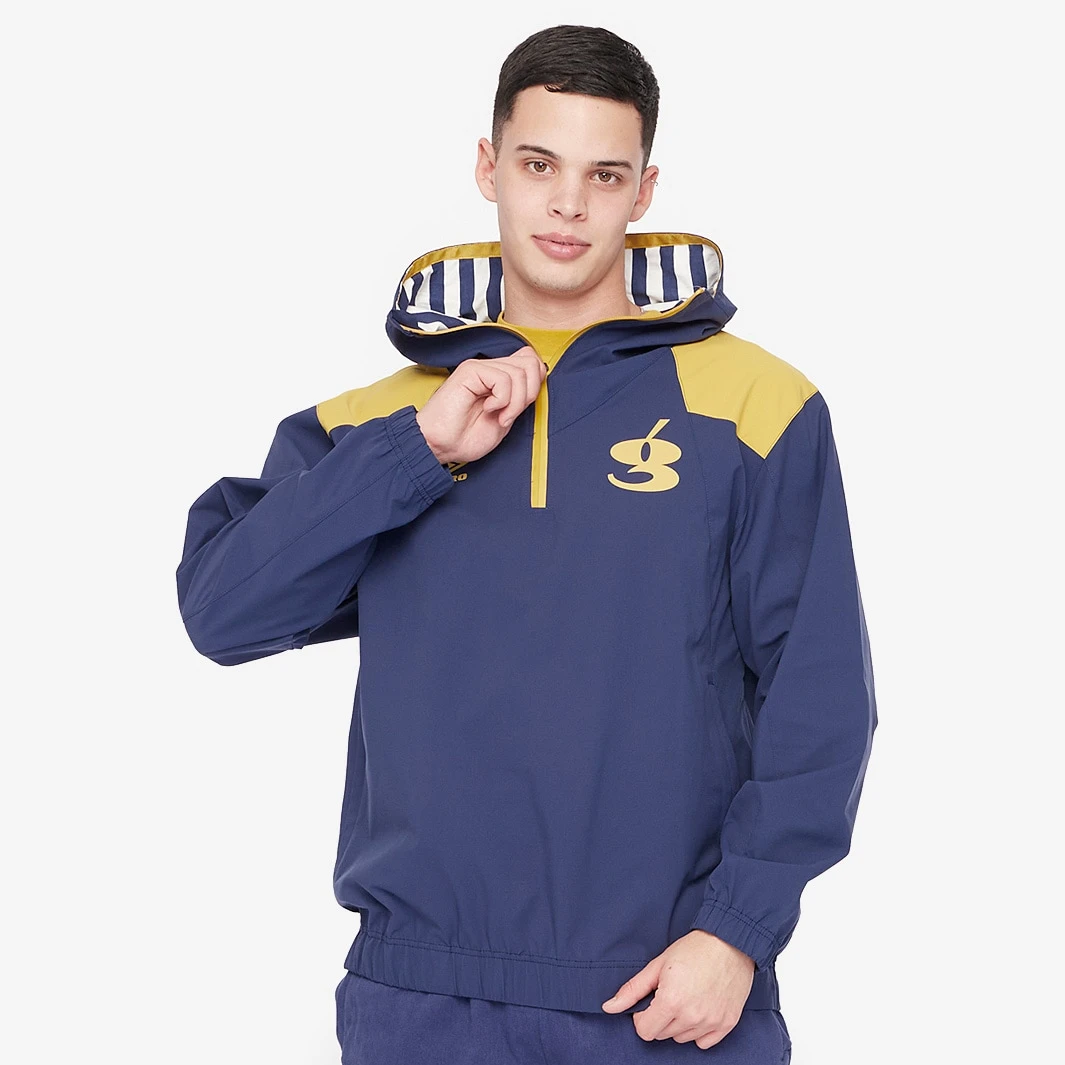 Weather the storm either at sea or on the festival dancefloor with the Umbro x Gio-Goi Nautical Smock in Patriot Blue/Spicy Mustard.