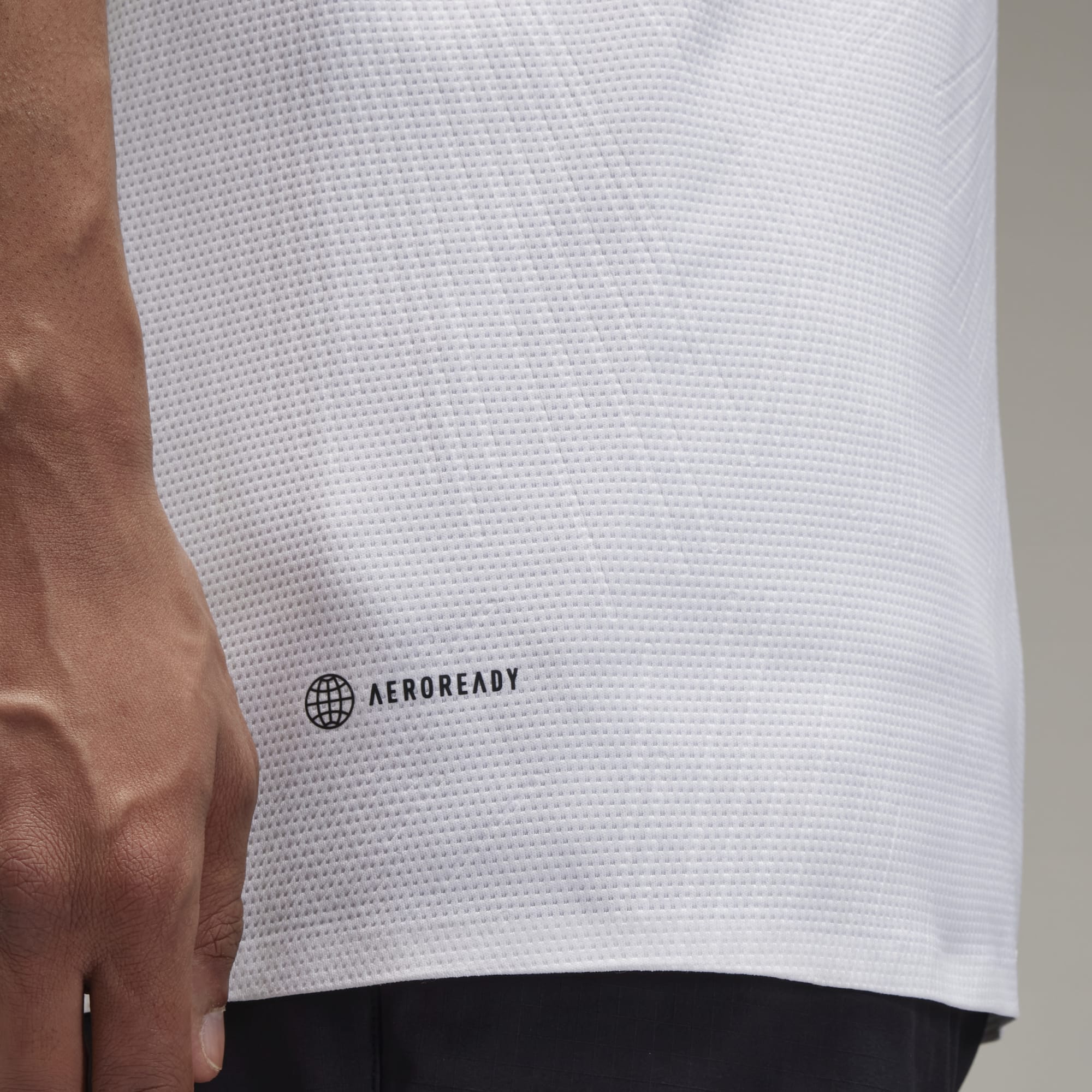 The subtle, embossed allover print becomes clearer when seen close, revealing the dynamic and intersecting lines emblematic of the collaboration. Moisture-absorbing AEROREADY provides comfort and added breathability. The Y-3 logo sits on one side of the chest, while the Real Madrid crest details the other. Made in part with recycled content generated from production waste, e.g. cutting scraps, and post-consumer household waste to avoid the larger environmental impact of producing virgin content.