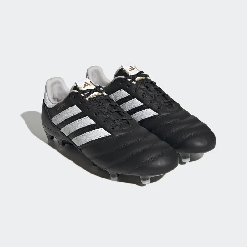 Based on the legendary Copa Mundial, these adidas Copa Icon FG football boots in Core Black/Cloud White/Gold Metallic keep the ball close with a supple, foot-hugging cow leather forefoot showing off classic stitched details.