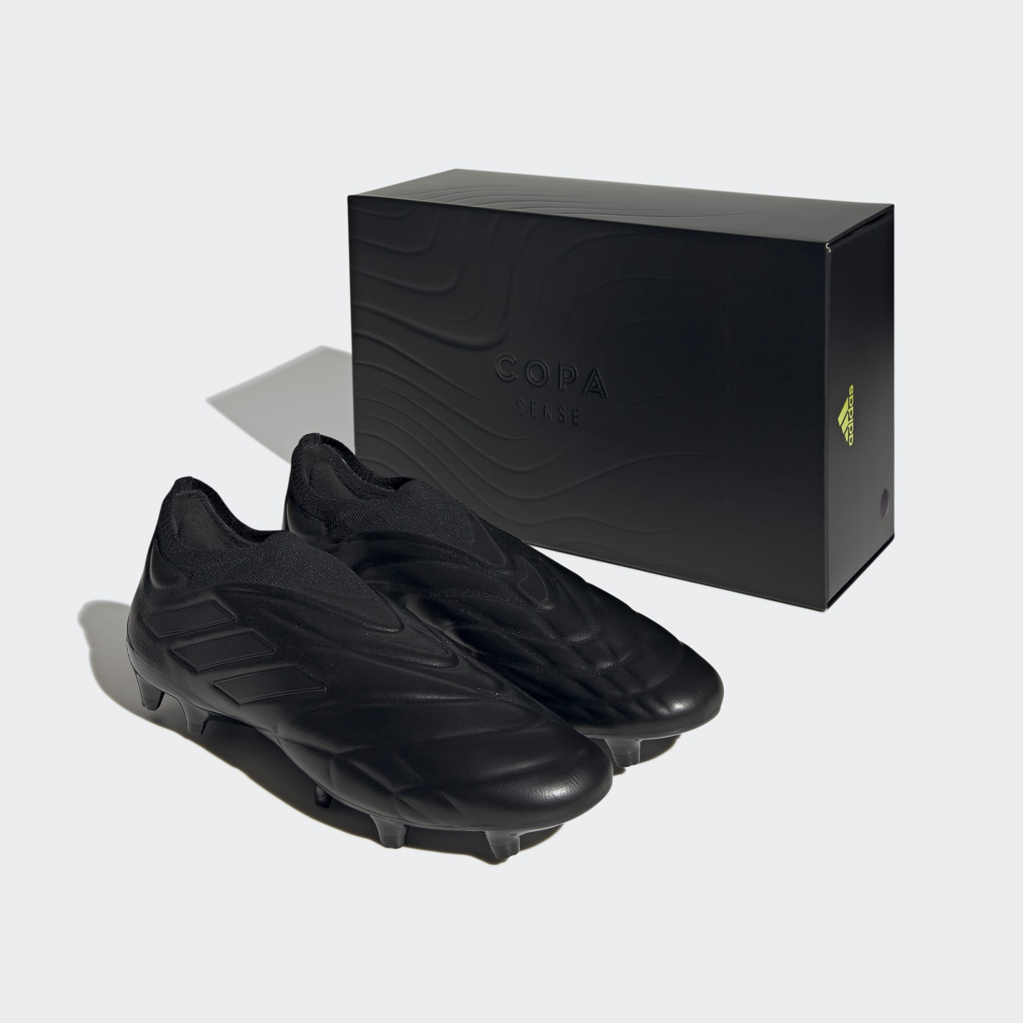 adidas Copa Pure filters out the noise with undiluted comfort and a flawless touch. The quilted, Fusionskin leather forefoot on these laceless Adidas Copa Pure+ FG football boots in Core Black / Core Black / Core Black is seamlessly blended to an adidas PRIMEKNIT collar for a cushioned touch and rock-solid stability.