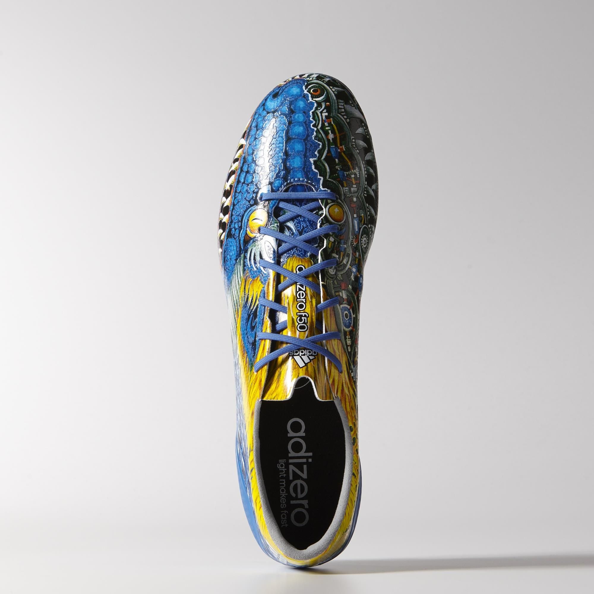 The limited edition adidas Yohji Yamamoto adizero F50 boot comes in a blue and green colorway and the traditional design has been placed in the context of Japan's modern sci-fi culture creating a spiritual connection between the past and the future.