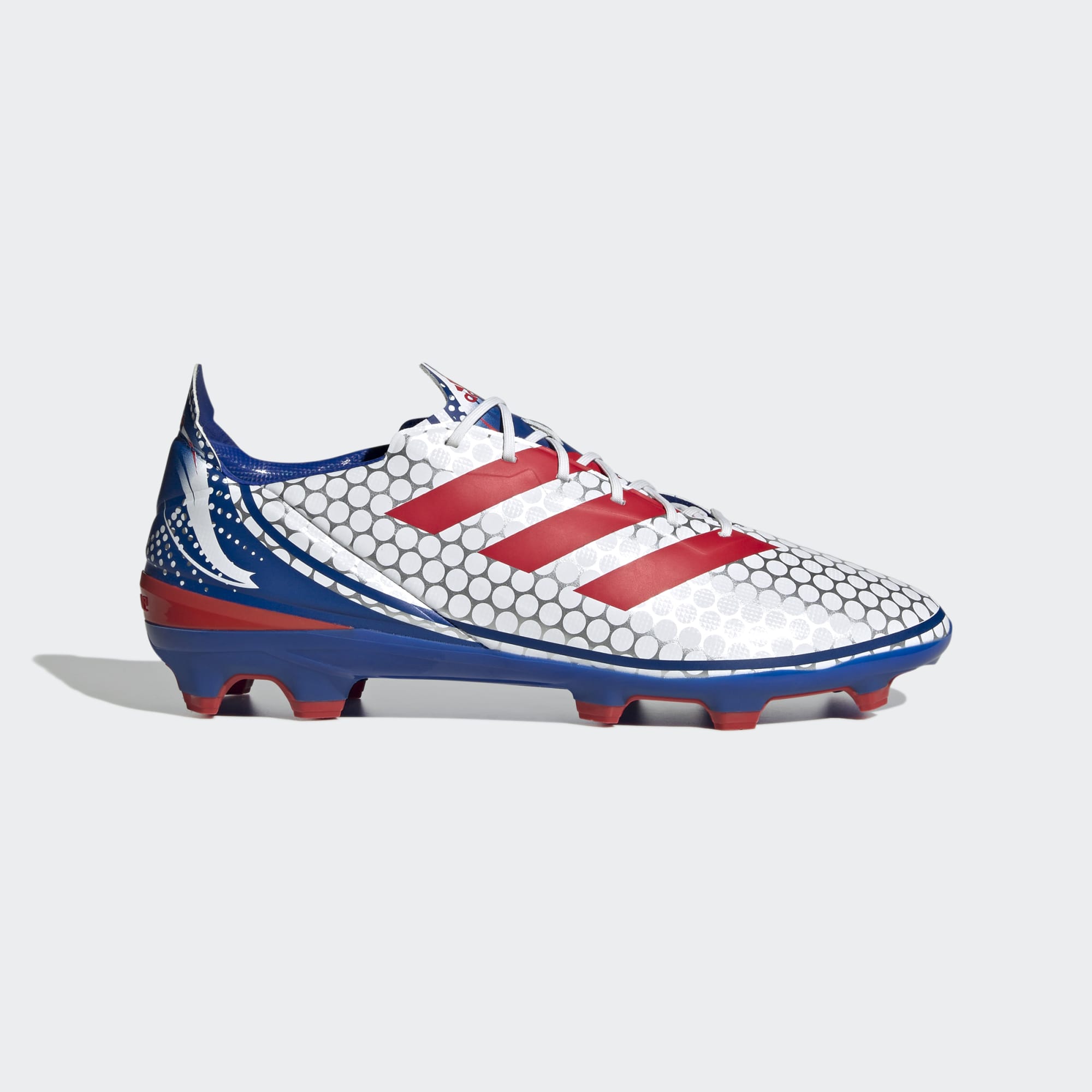 Created with a comfortable fit for a wide range of foot shapes, these adidas Gamemode FG football boots in Cloud White/Team Collegiate Red/Royal Blue offer a cushioned touch thanks to their soft HybridTouch upper.