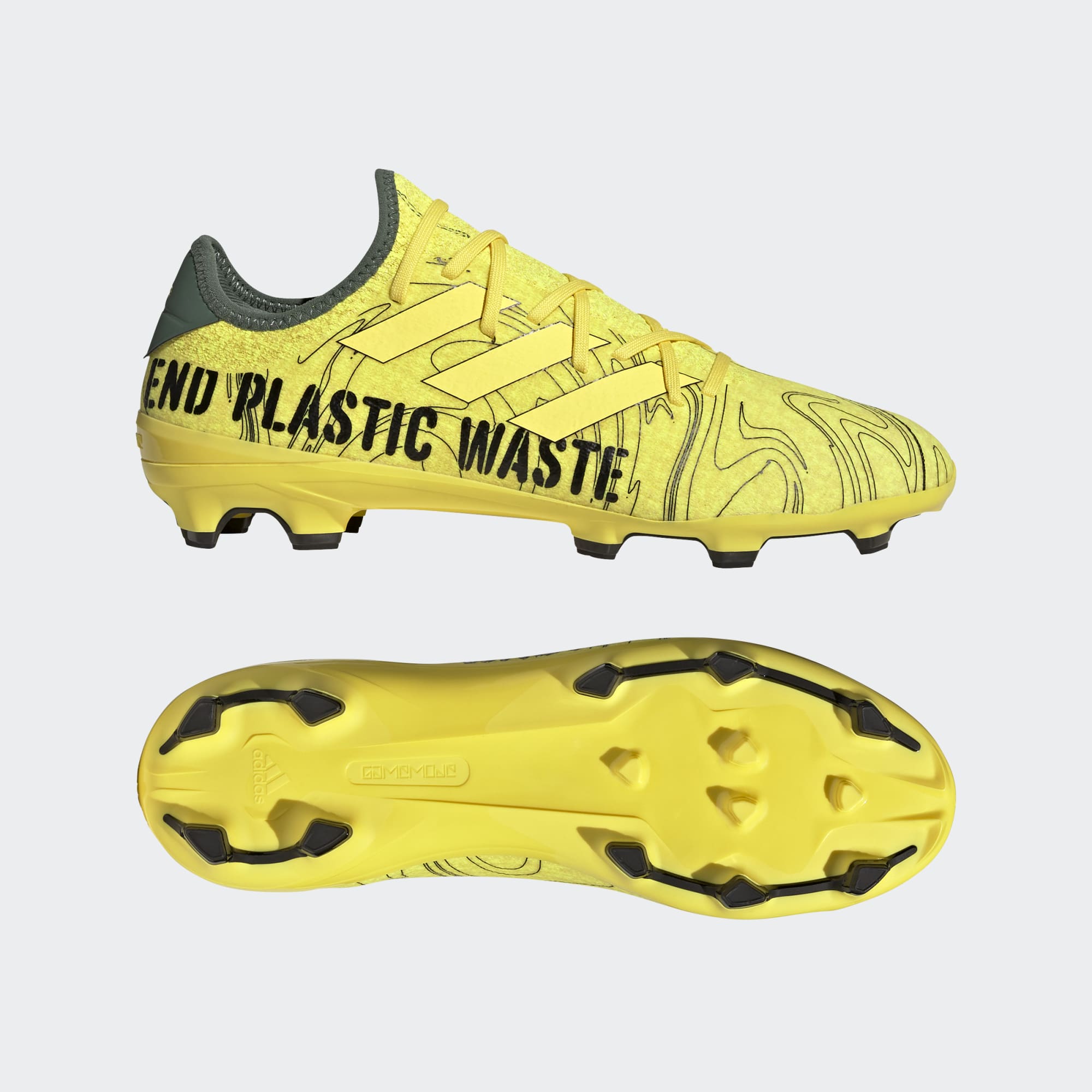 Designed to fit a wide range of foot shapes, these Adidas Gamemode Knit FG boots in Impact Yellow/Beam Yellow/Green Oxide are built for comfortable play.
