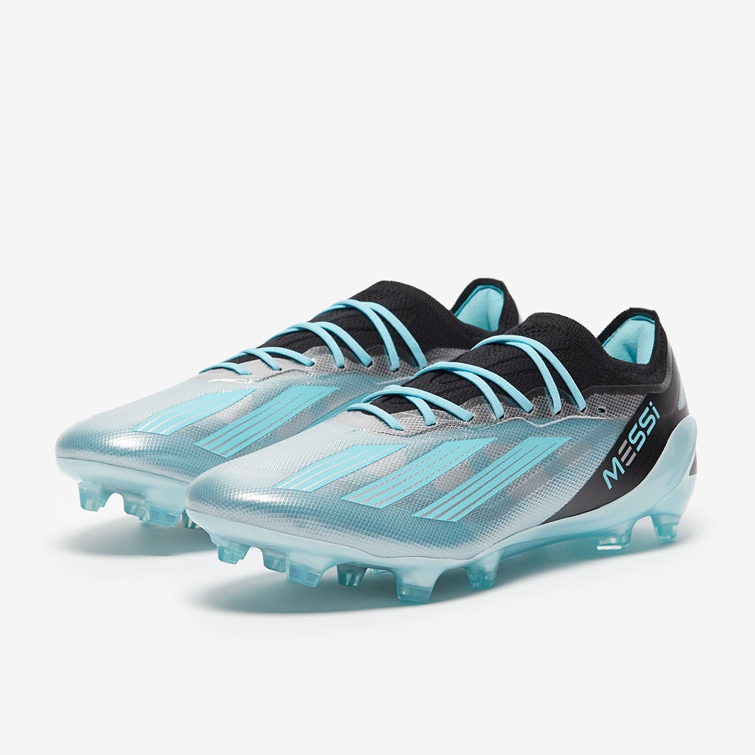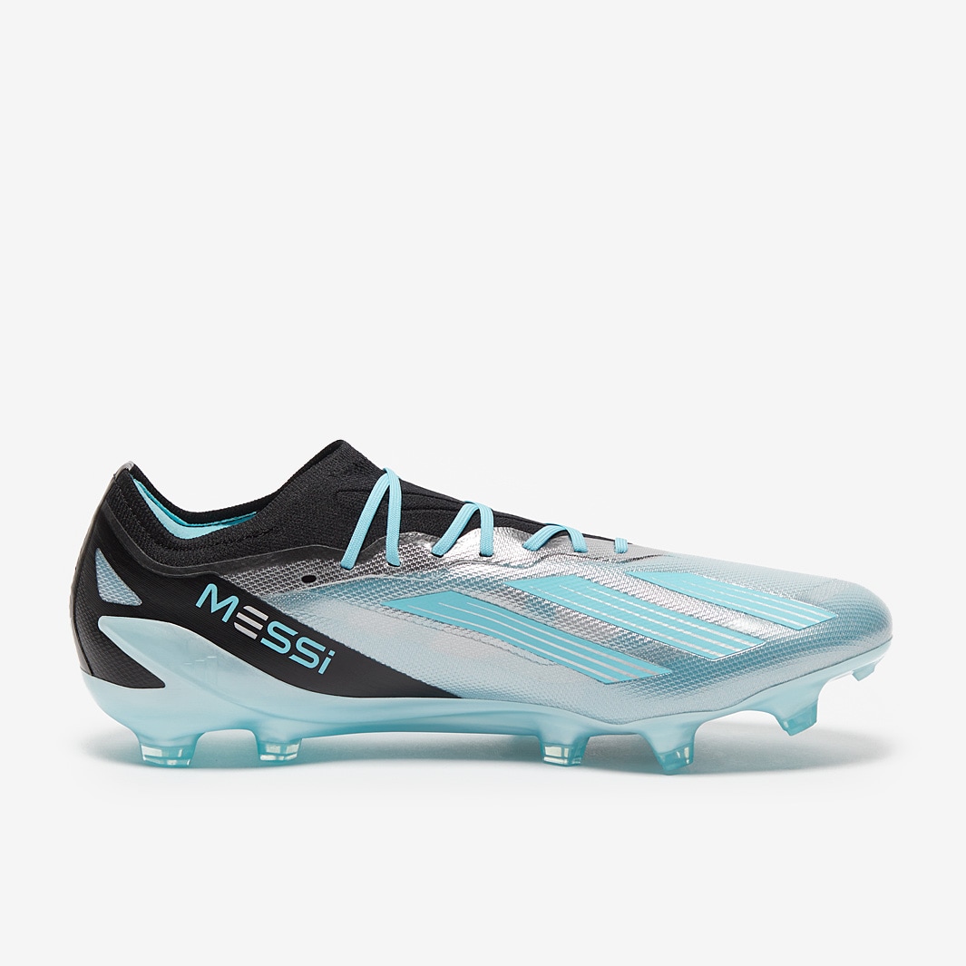 Experience the exhilarating speed of the adidas X Crazyfast Messi.1 FG football boots in Silver Met/Bliss Blue/Core Black.