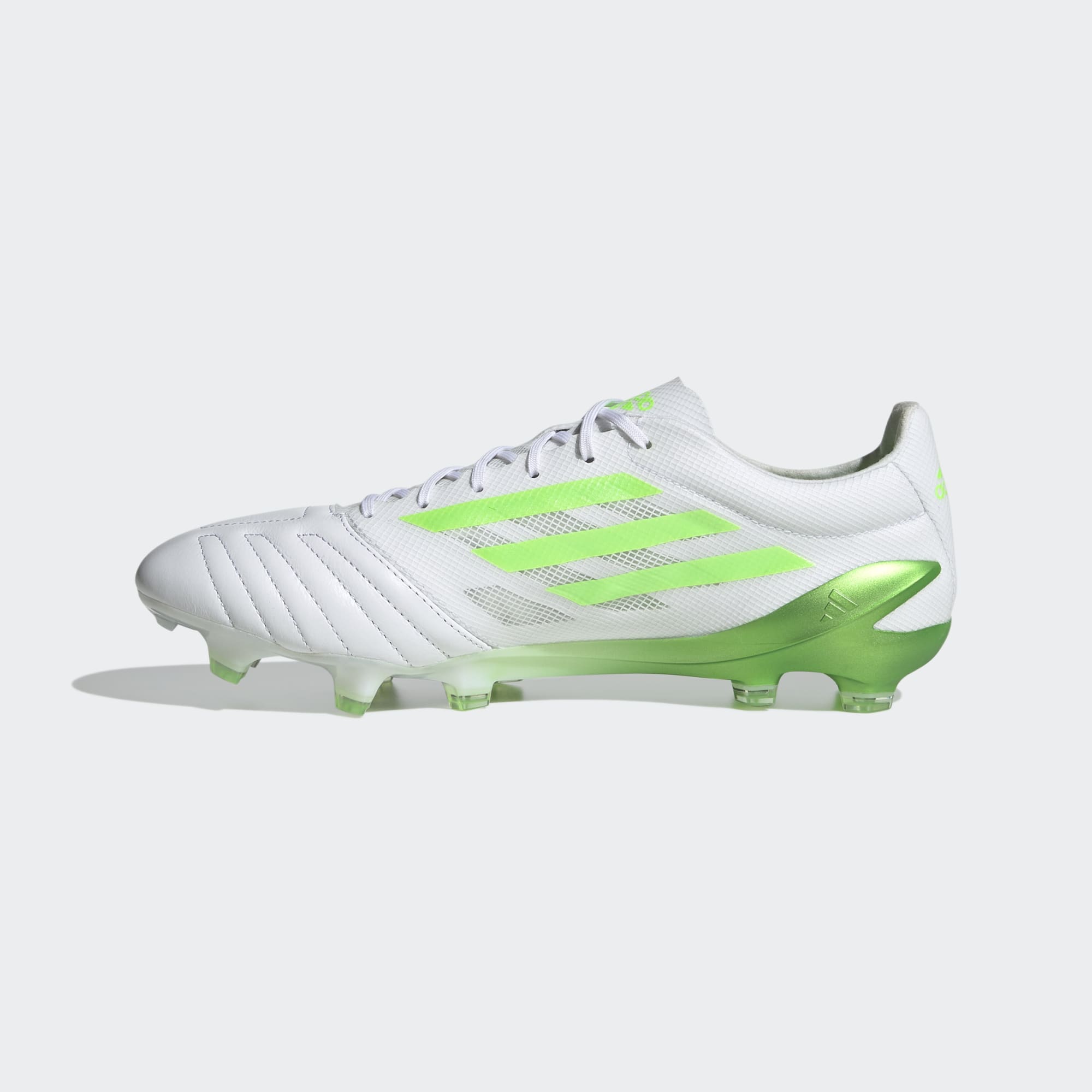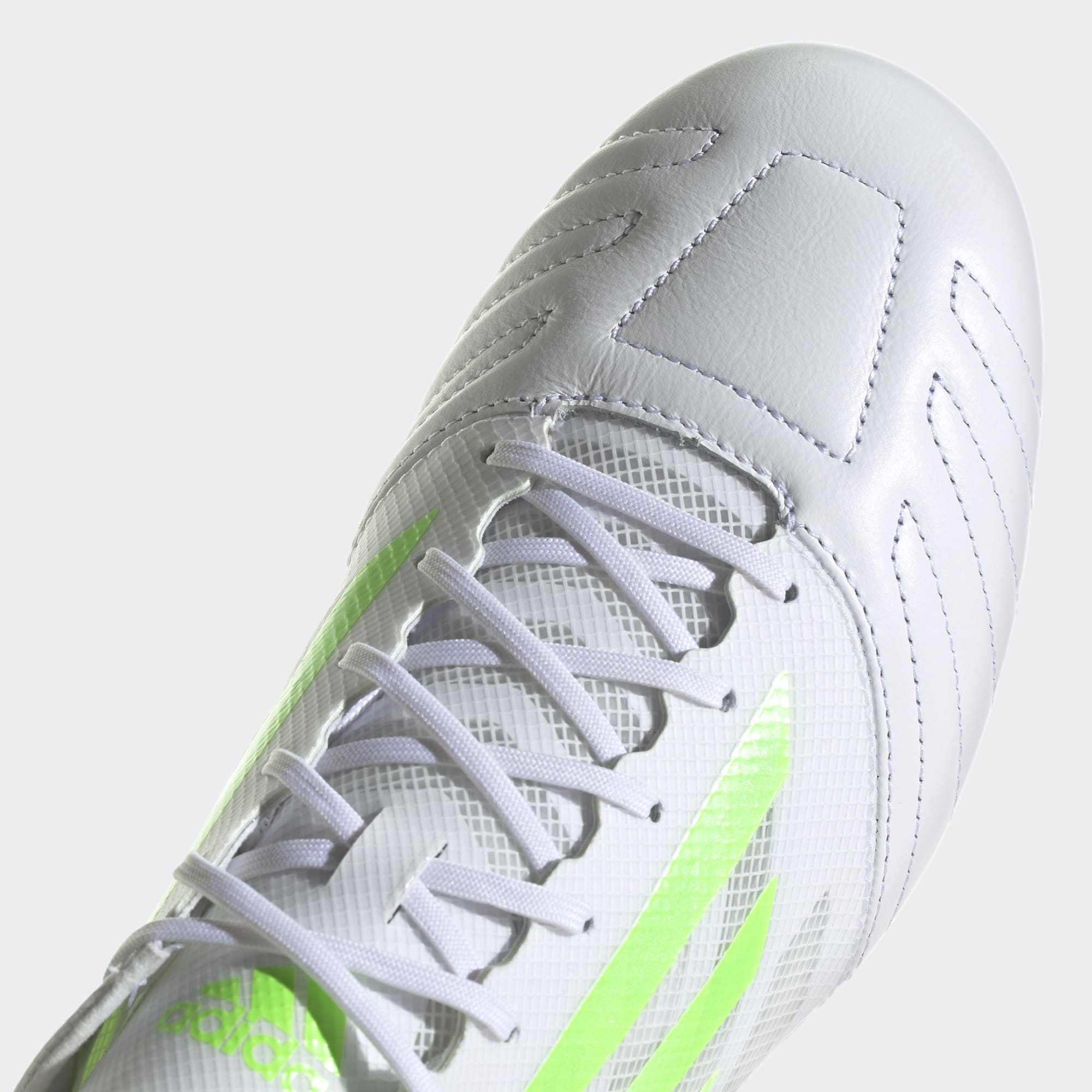 Now, this new limited-edition adidas X Speedportal 99 Leather.1 FG football boots in Cloud White/Solar Green/Cloud White has been released by adidas with an even more comfortable design featuring a supple K-leather forefoot and a reinforced synthetic mesh quarter from the X99.1 of 2019.