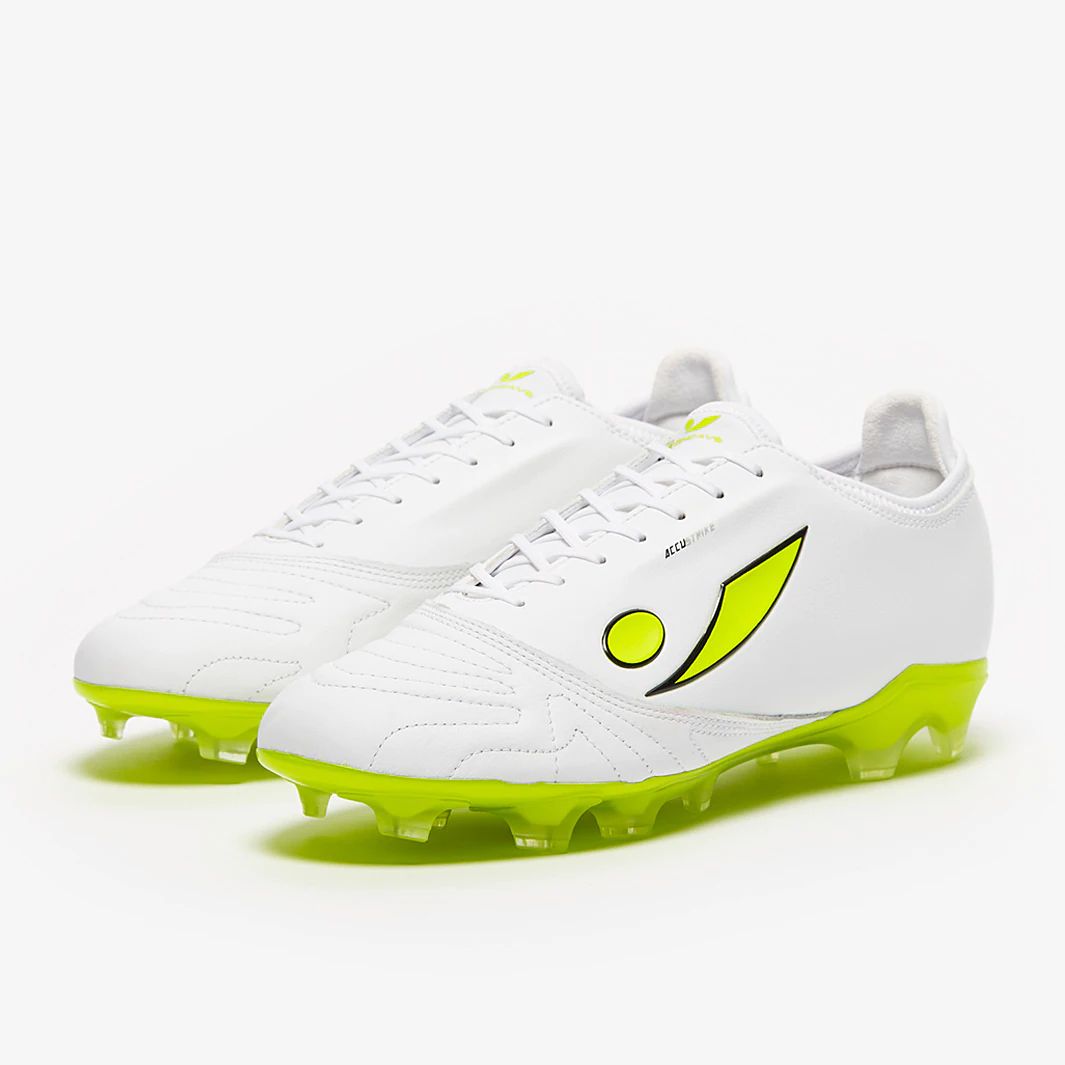 These are the Concave Halo+ Pro K-Leather FG in White/Green, designed to maximise the power and accuracy of your strikes. These boots are made with high-performance technology that elevates your level of play, whatever your position.