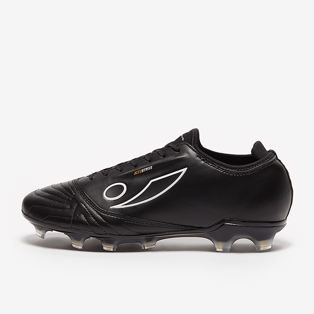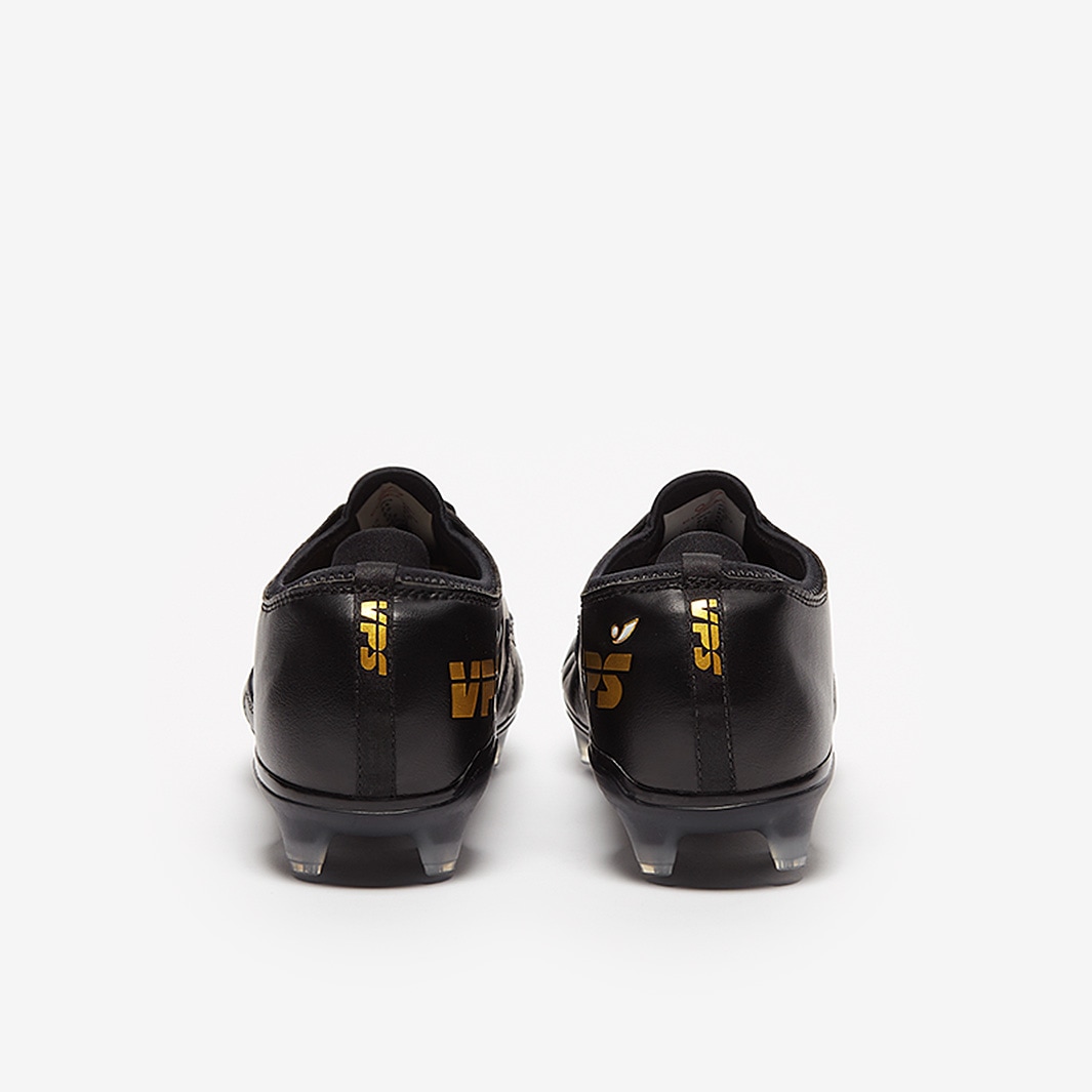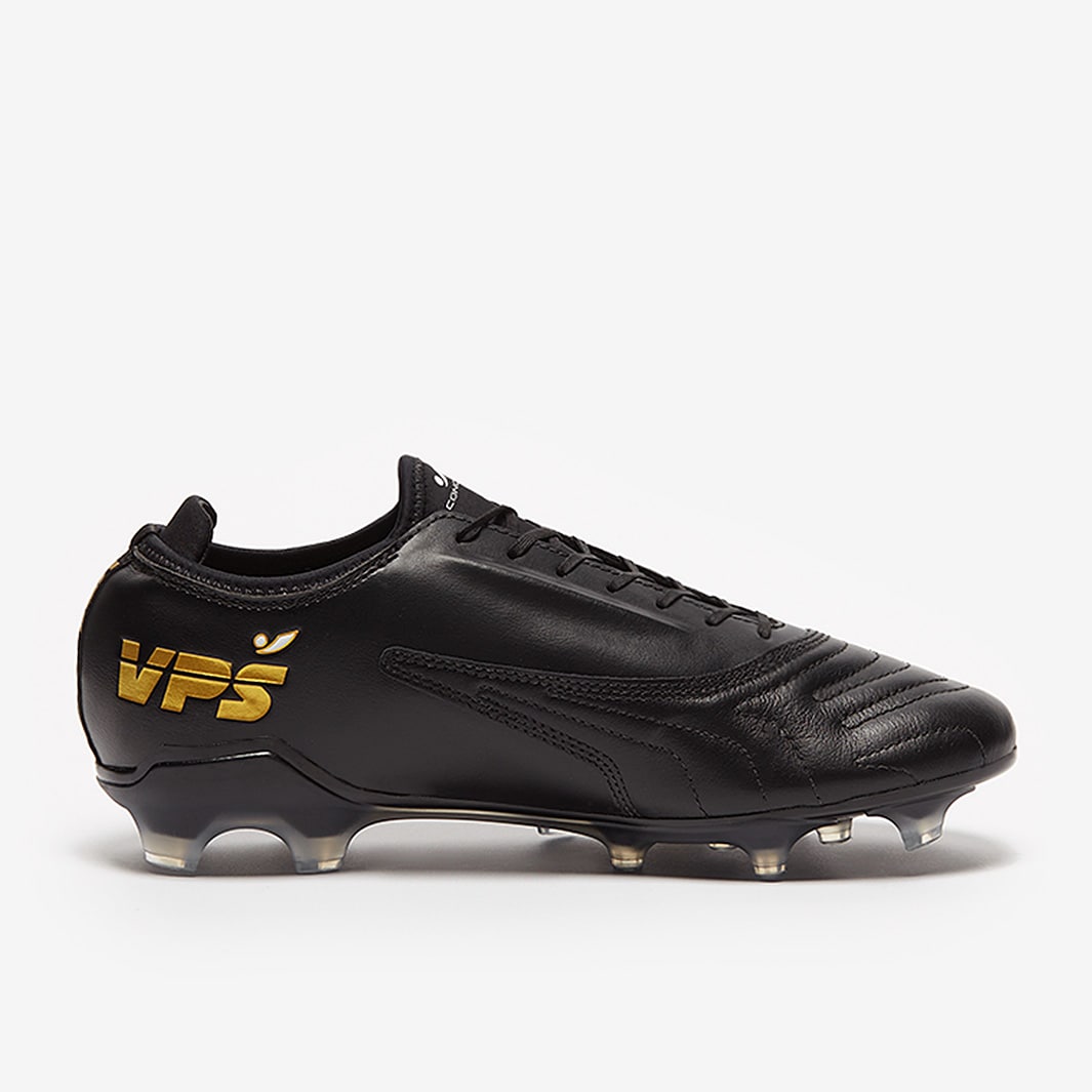 These are the Concave VPS FG football boots in Black/White/Gold, featuring a signature design that acknowledges the expertise of Concave's Head of Innovation, Volker Peter Steidle, in bootmaking.