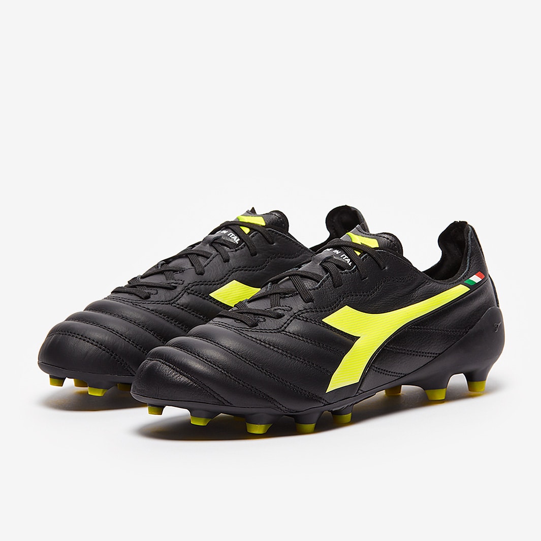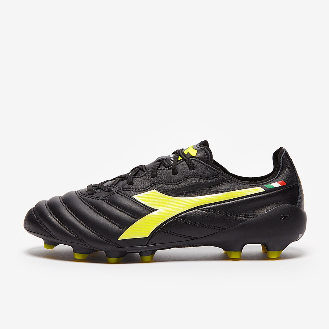 Play like a 90s icon with Diadora B-Elite Italia Tech FG football boots in Black/Yellow Fluo, a limited edition of the B-Elite decked out in one of the all-time classic colourways.
