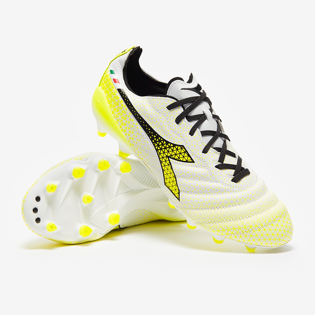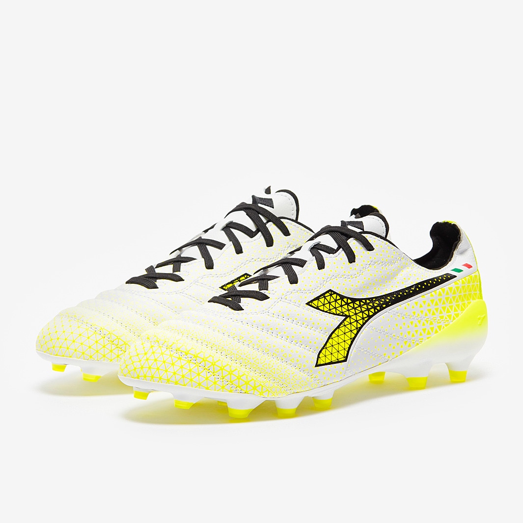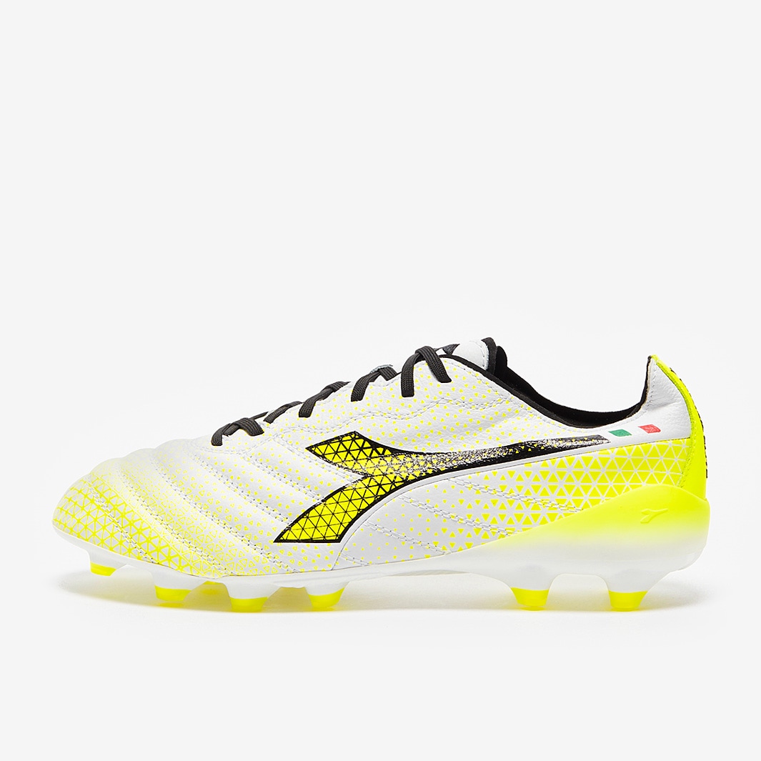 Experience unparalleled performance with the Diadora B-Elite Tech Made in Italy FG in White/Black/Fluo Yellow.
