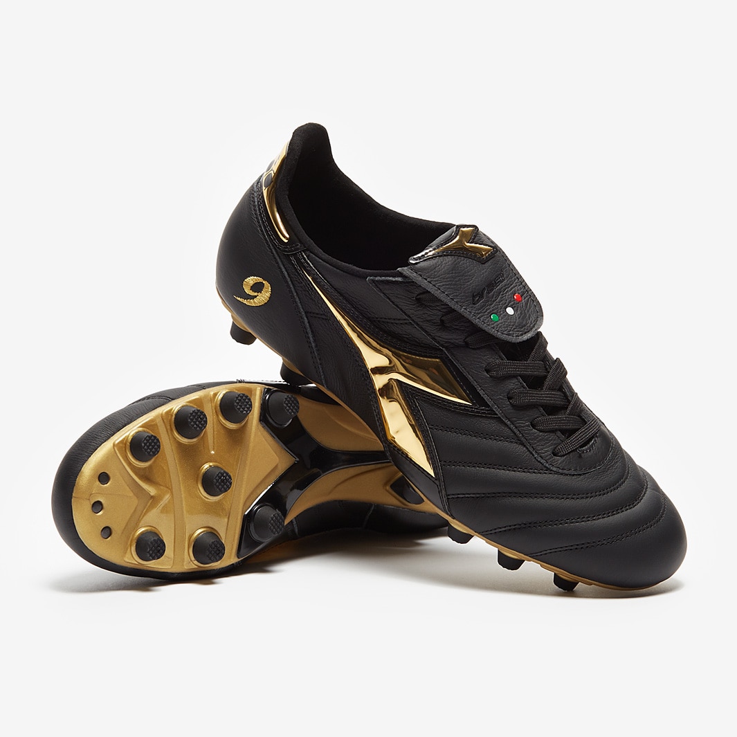 These are the newly released Diadora Brasil Made In Italy FG x Icon Series football boots in Black/Gold, a limited edition of the Brasil made in honour of the legendary Italian striker, Pippo Inzaghi.