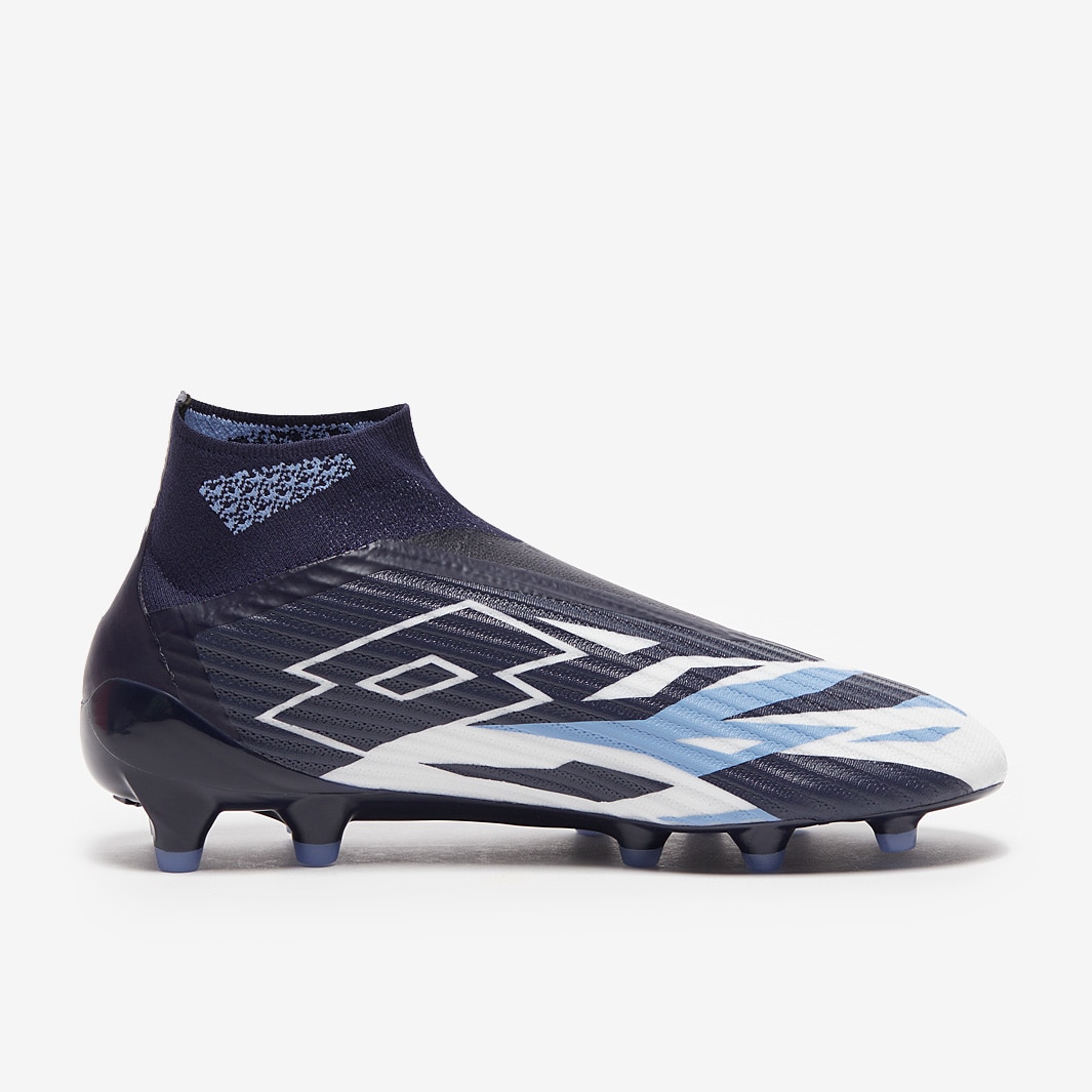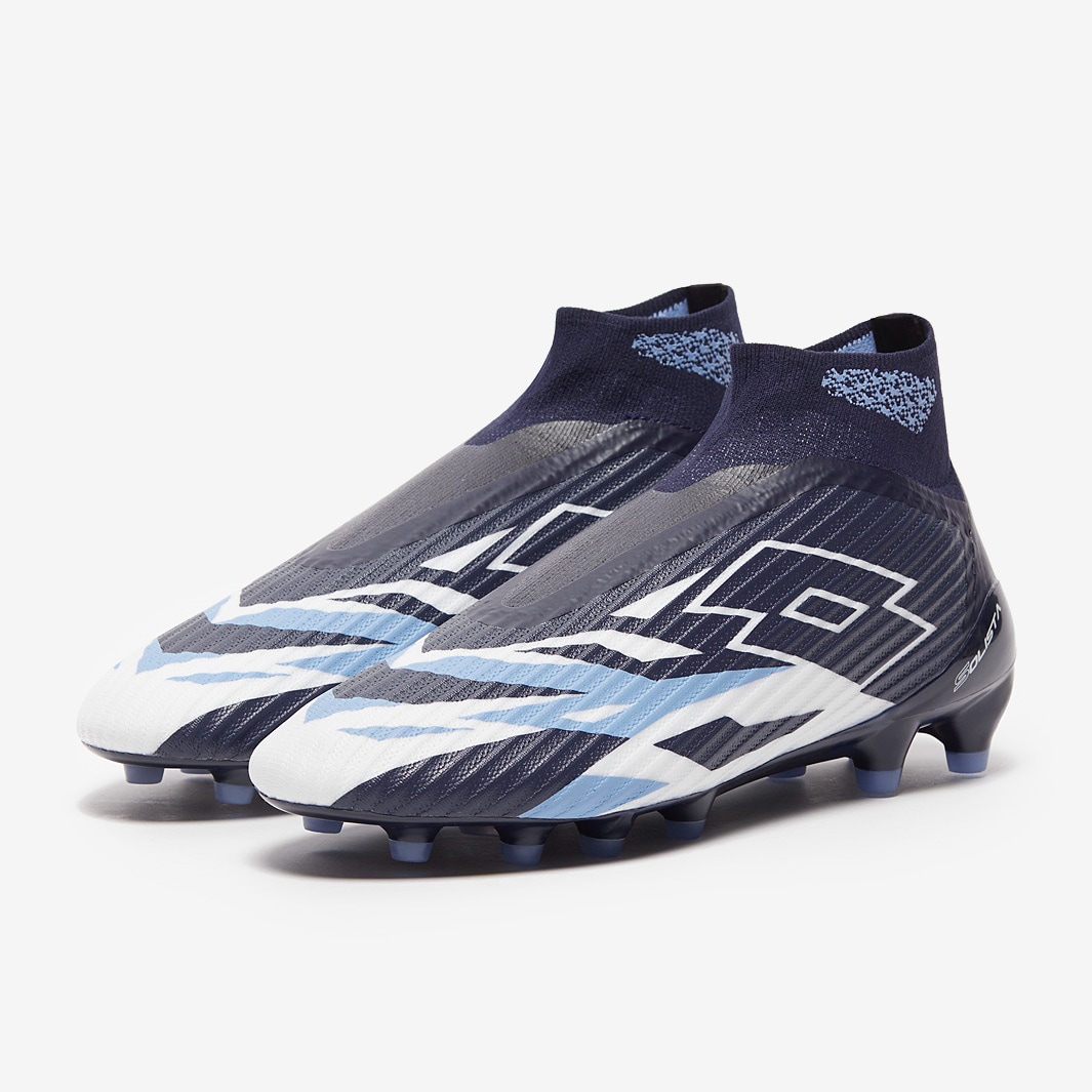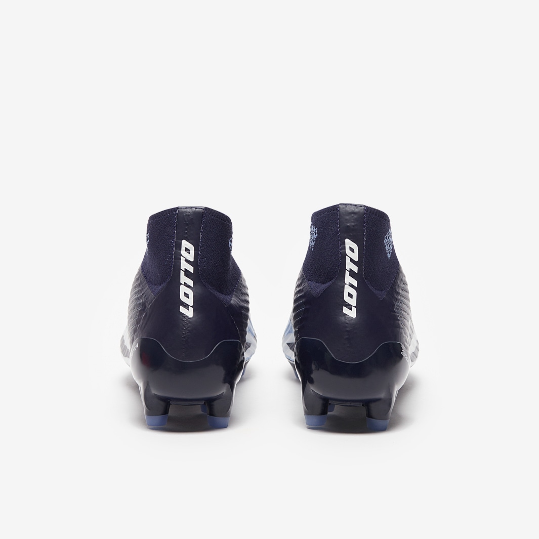 Dominate the field with the Lotto Solista 100 VI Gravity FG football boots in Navy Blue/All White/Cornflower, engineered to amplify the speed of the swiftest players.