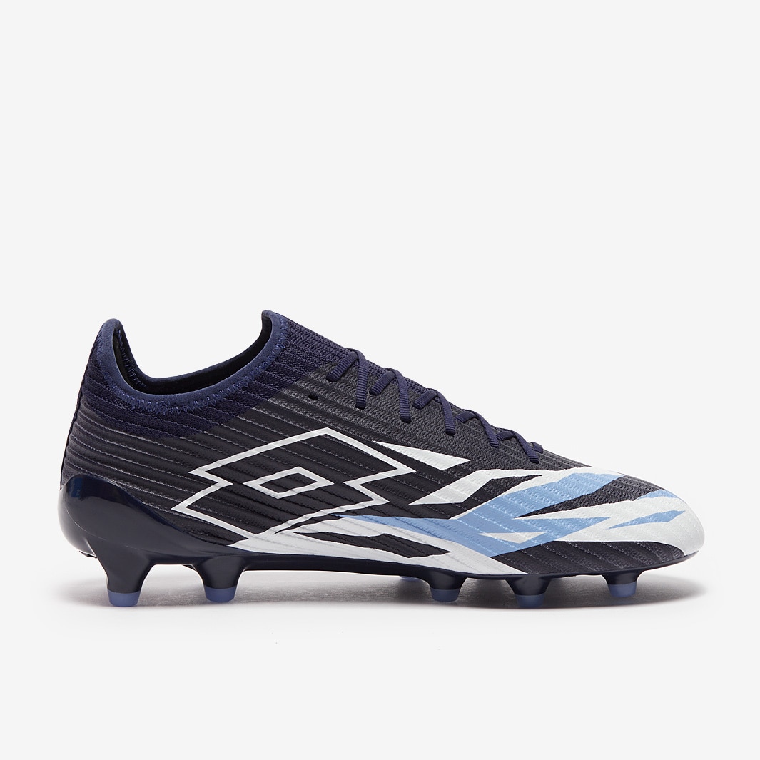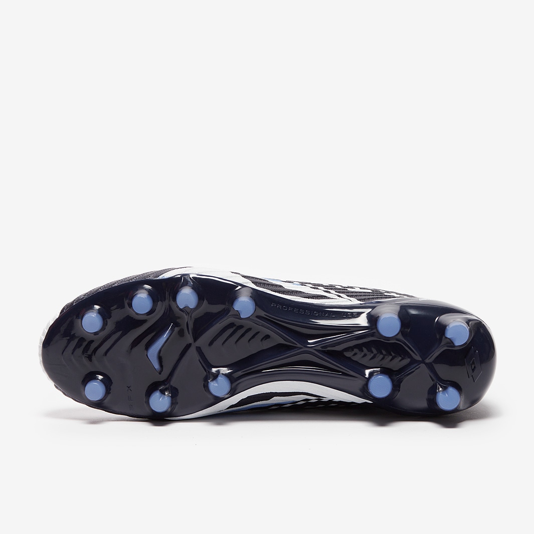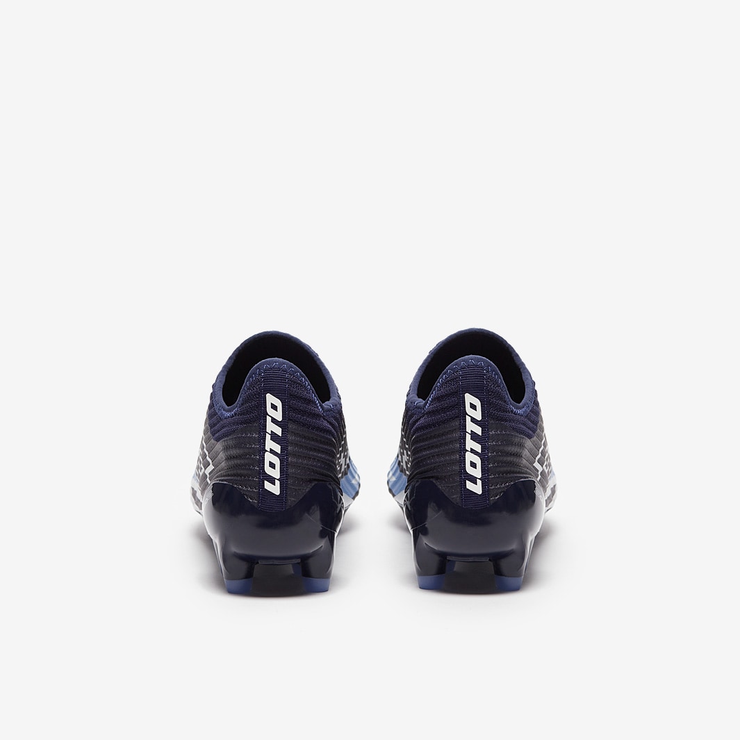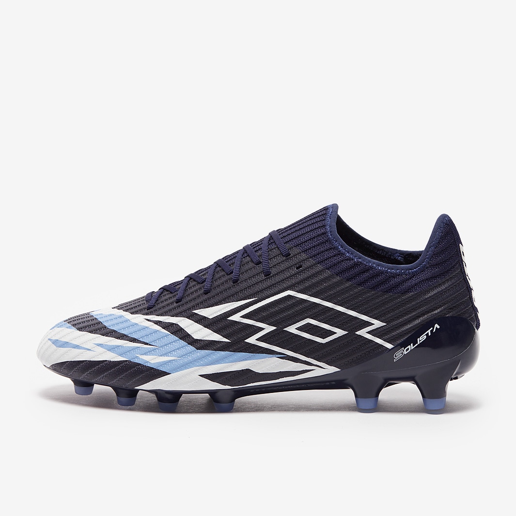 These are the new Lotto Solista 200 VI FG football boots in Navy Blue/All White/Cornflower, engineered to make the quickest players even quicker.