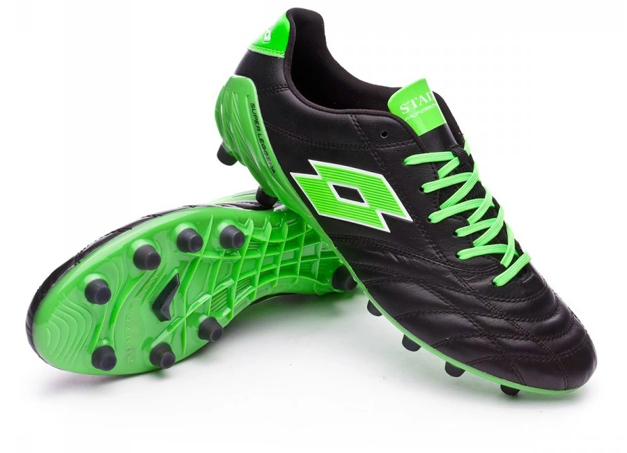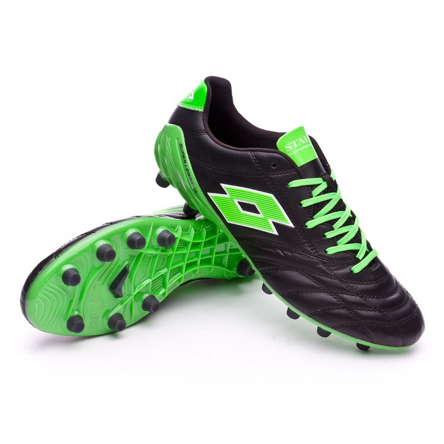 Lotto Stadio 100 football boots. Suitable for natural and last generation artificial grass pitches. Black - Mint Fluor high-end boots. Designed for classic players.