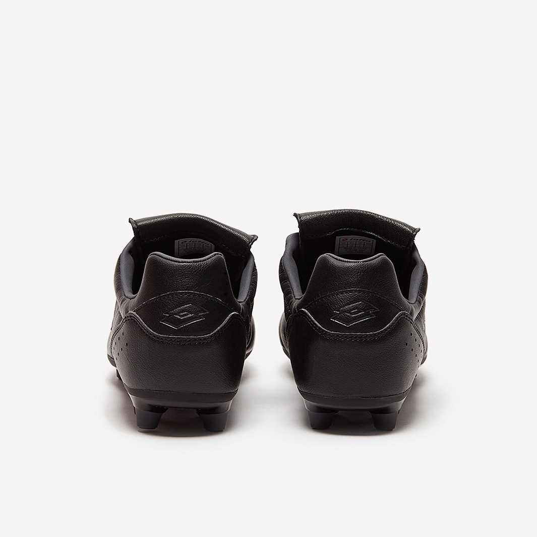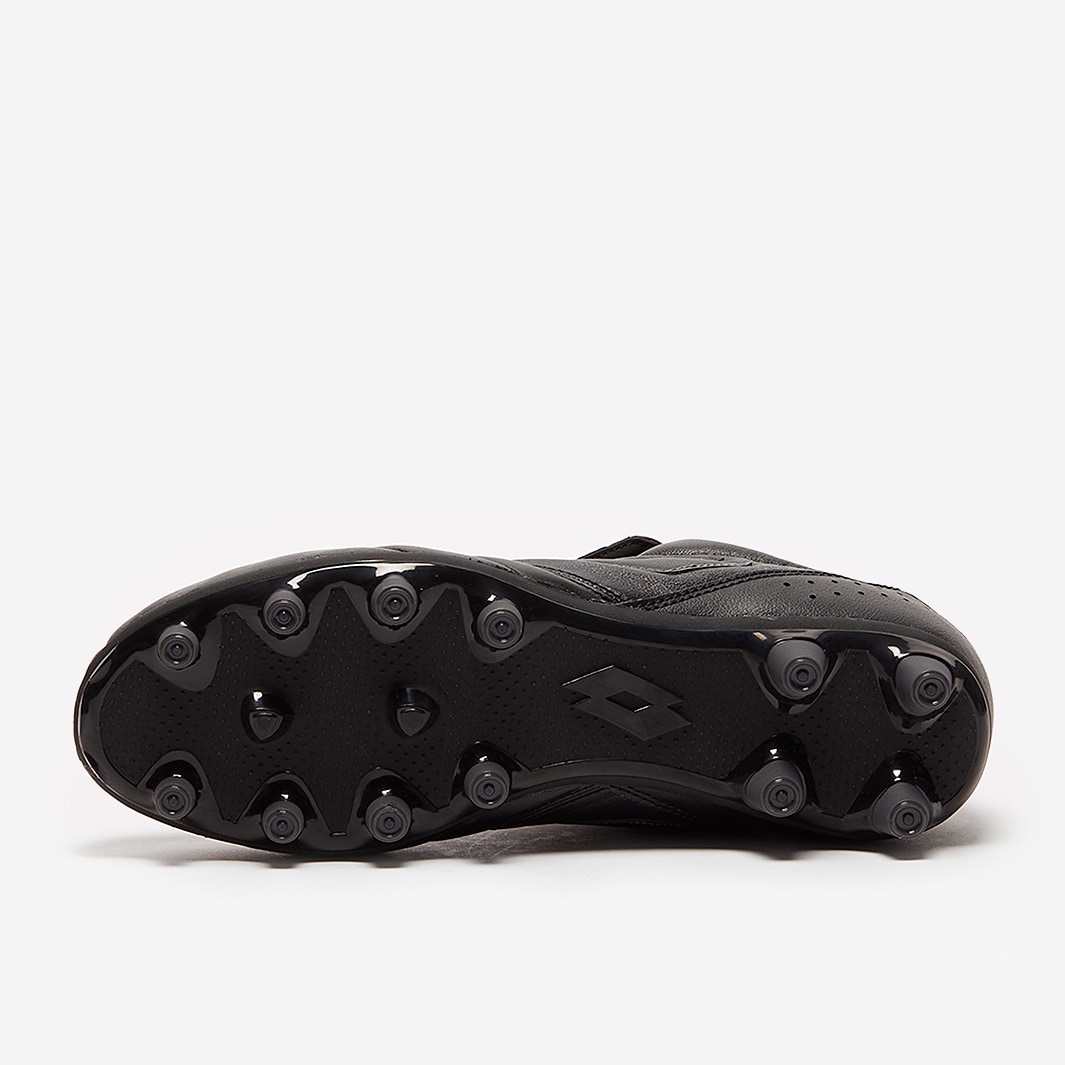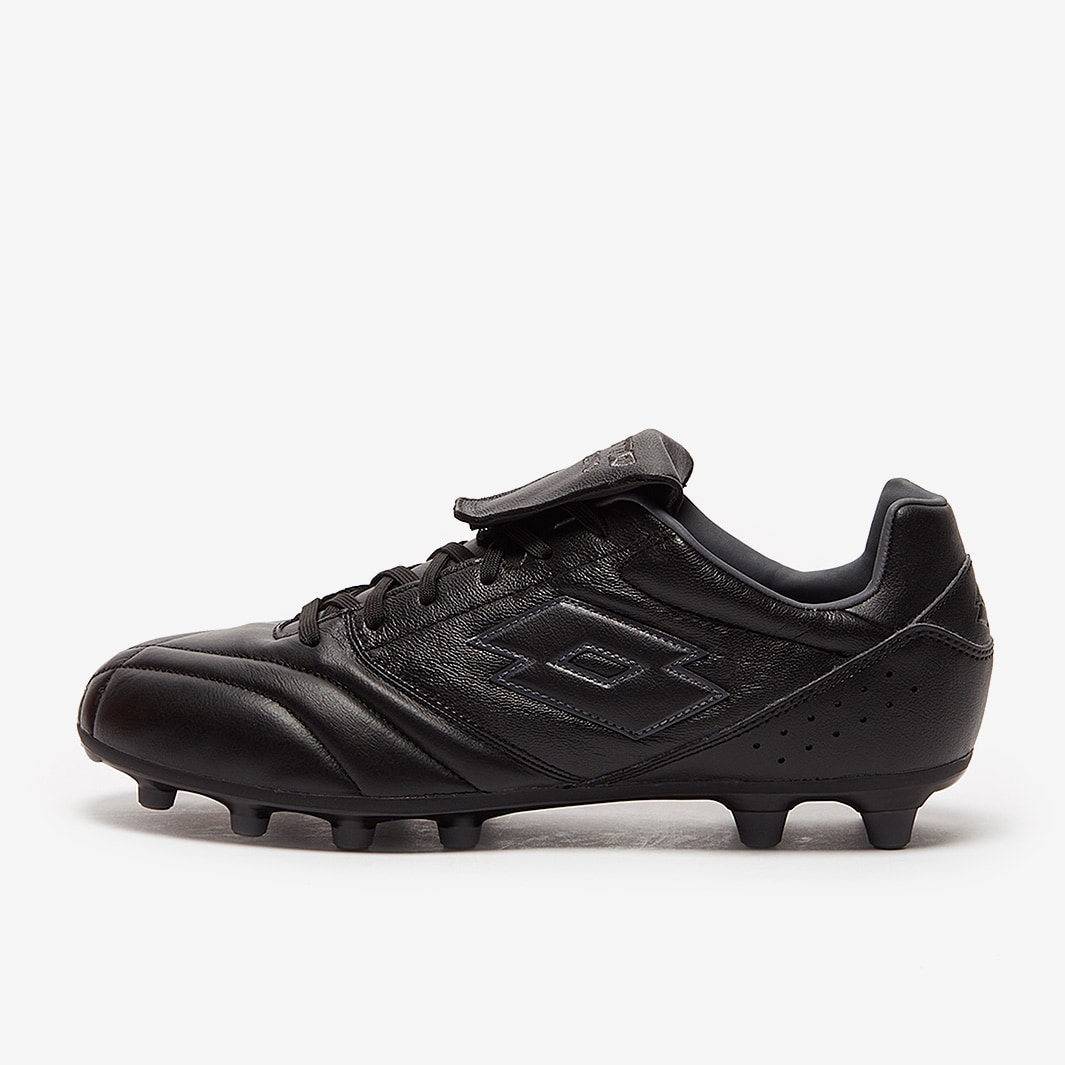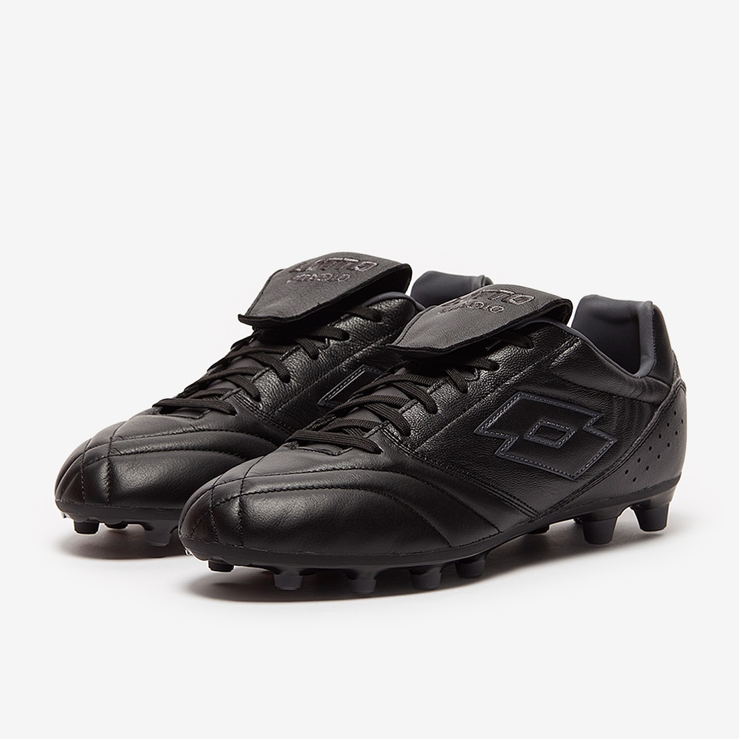 These are the Lotto Stadio 200 III FG football boots in Black/Asphalt, featuring a leather upper for a perfect first touch.