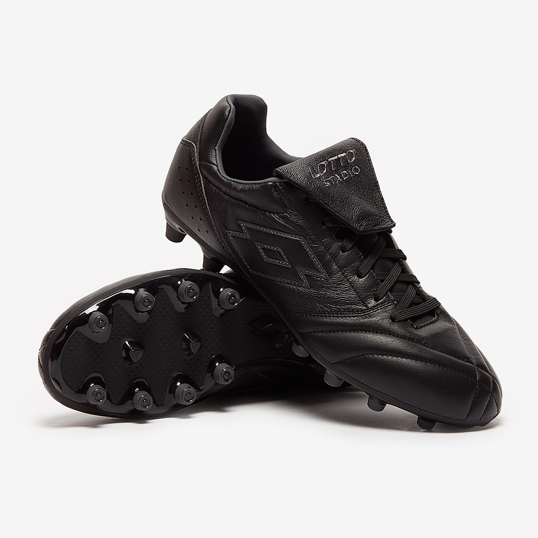 These are the Lotto Stadio 200 III FG football boots in Black/Asphalt, featuring a leather upper for a perfect first touch.