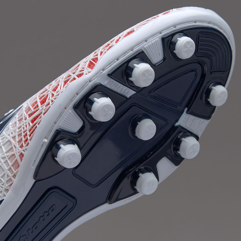 Top-quality synthetic microfibre with Water-repellent technology to keep water - a common element on the playing fields - from interfering in the game experience. A combination between innovation and classicism, evidenced respectively by the inclusion of studs with three traction edges and the presence of 'puntoFlex', the technology that has been part of Lotto outsoles for over 20 years.