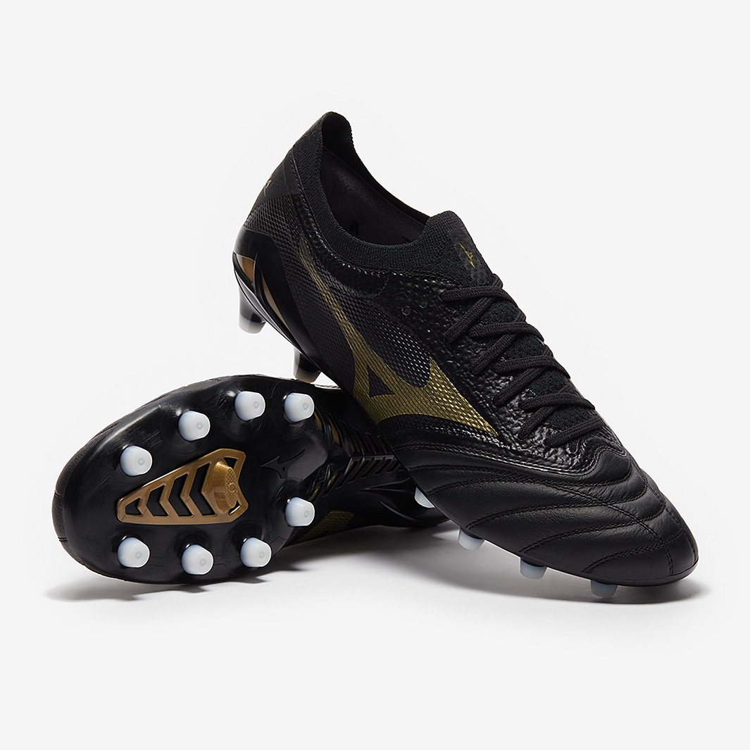 These are the Mizuno Morelia Neo IV Beta Elite FG football boots in Black/Gold.