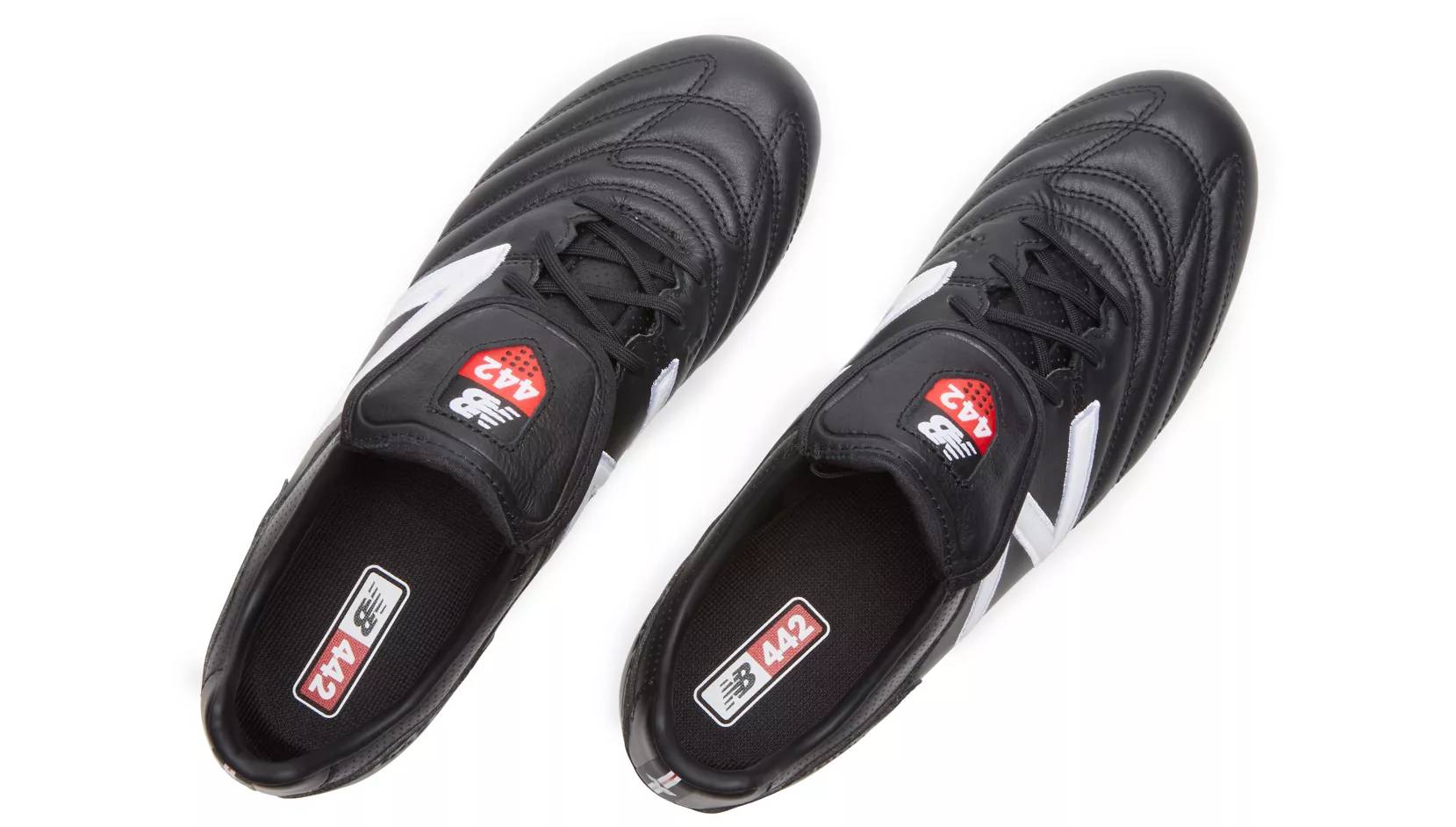 Designed for use on firm natural ground surfaces, the New Balance 442 Pro FG football boots feature a soft K-leather vamp and classic fold-over tongue design.