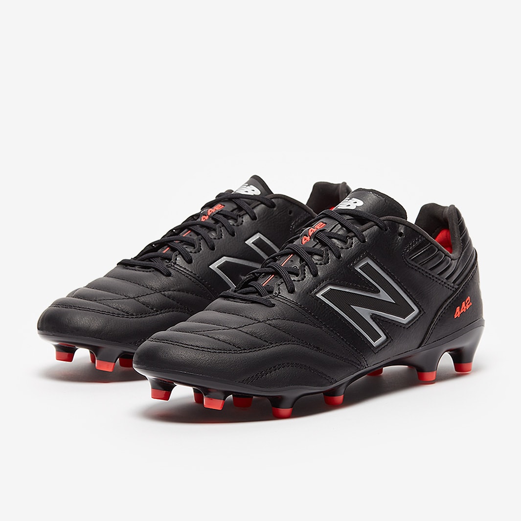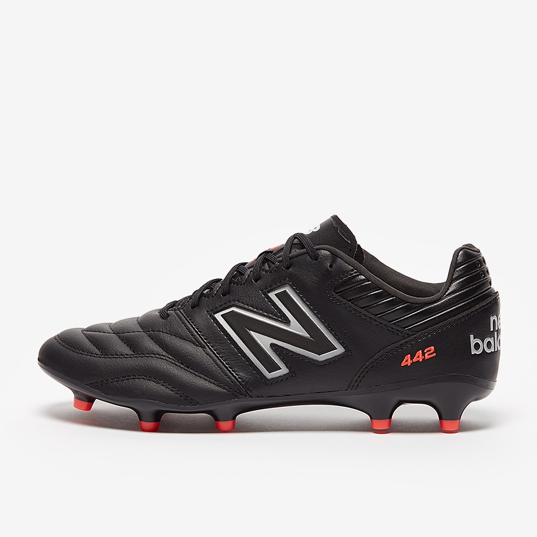 New Balance launched these 442 V2 Pro FG football boots in Black/Silver, a premium K-leather boot updated with a new stitching pattern and elite-level nylon soleplate.