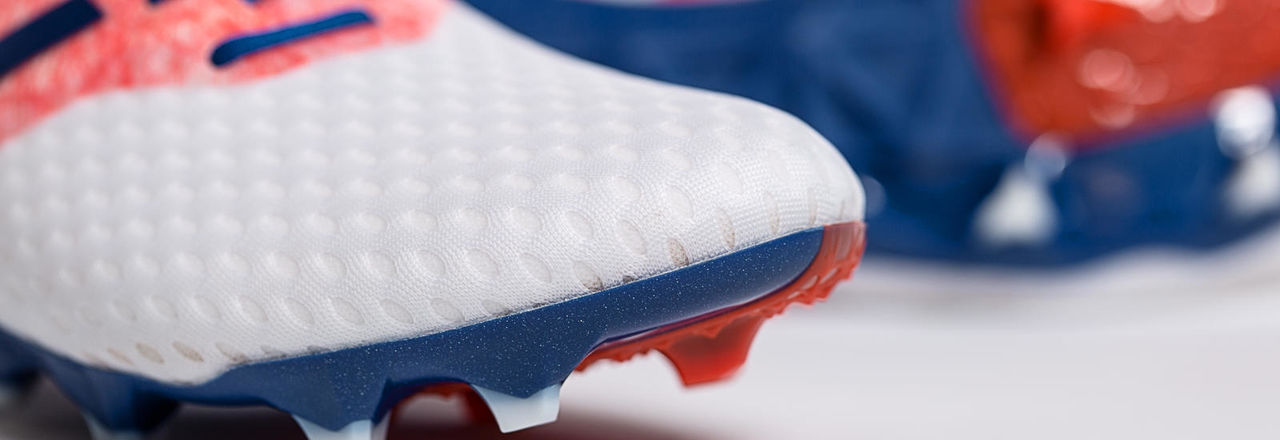 Experience light speed with the combination of ultralight FantomFit engineered high energy return synthetic/mesh upper cage and REVlite footbed built into the Furon Pro FG. Be nimble with the burrito tongue construction, asymmetrical internal heel counter, lightweight nylon outsole with TPU “Acceleration Zone,” biomechanical stud placement and additional wide fitting.