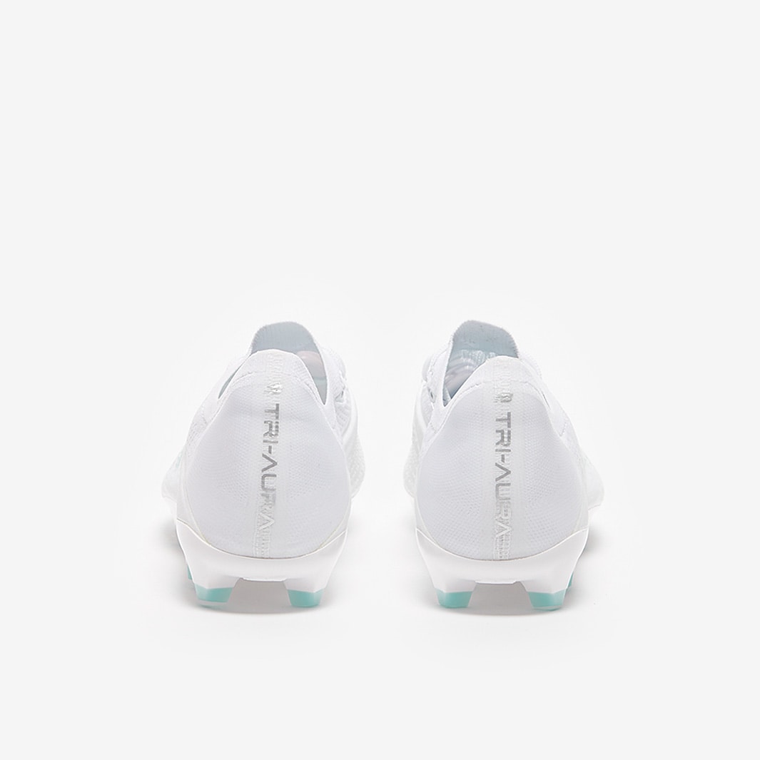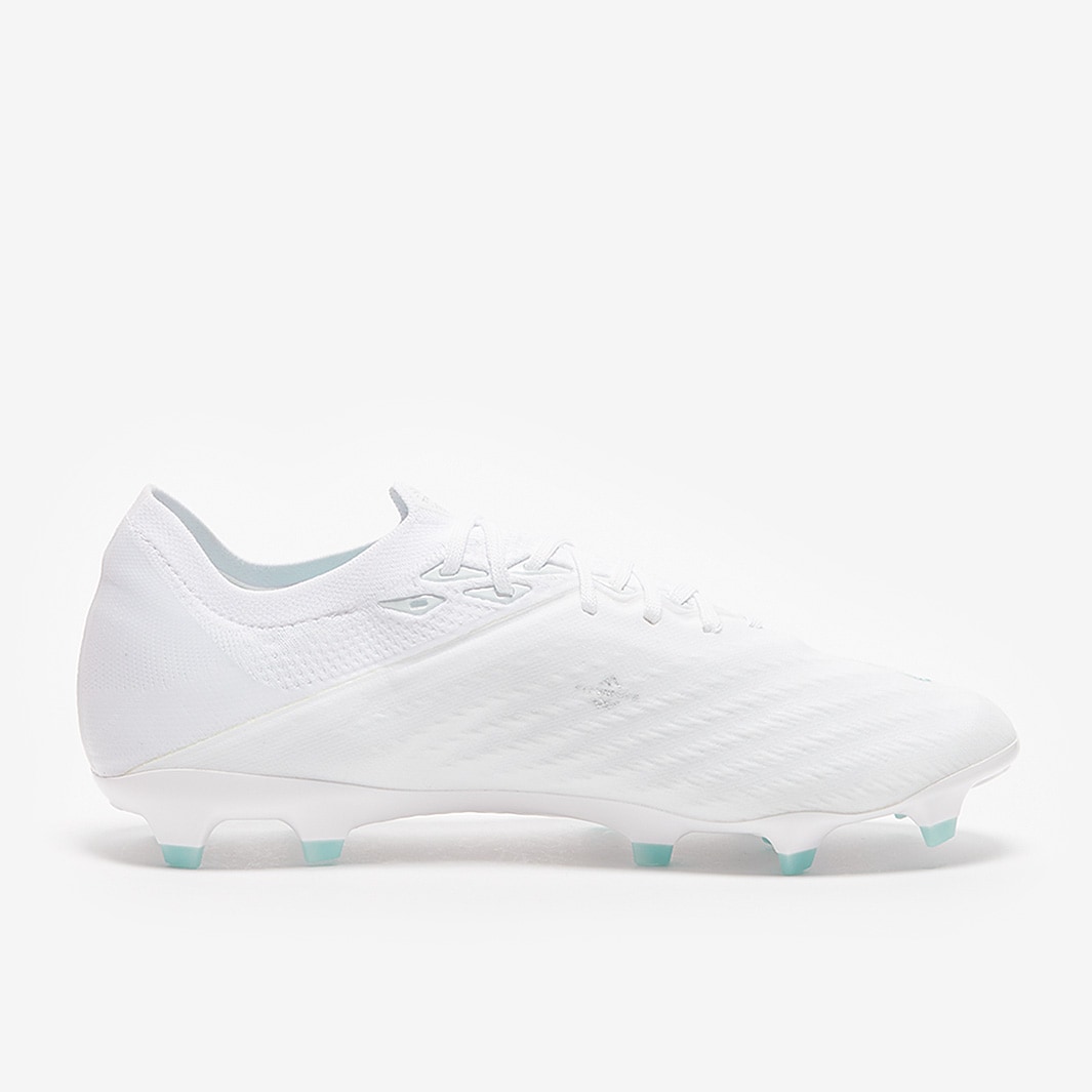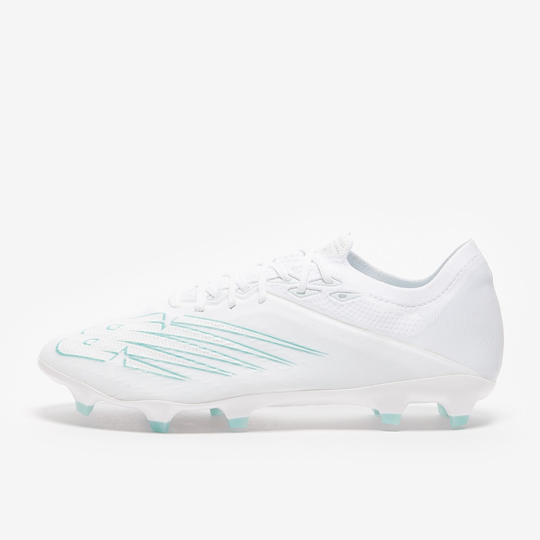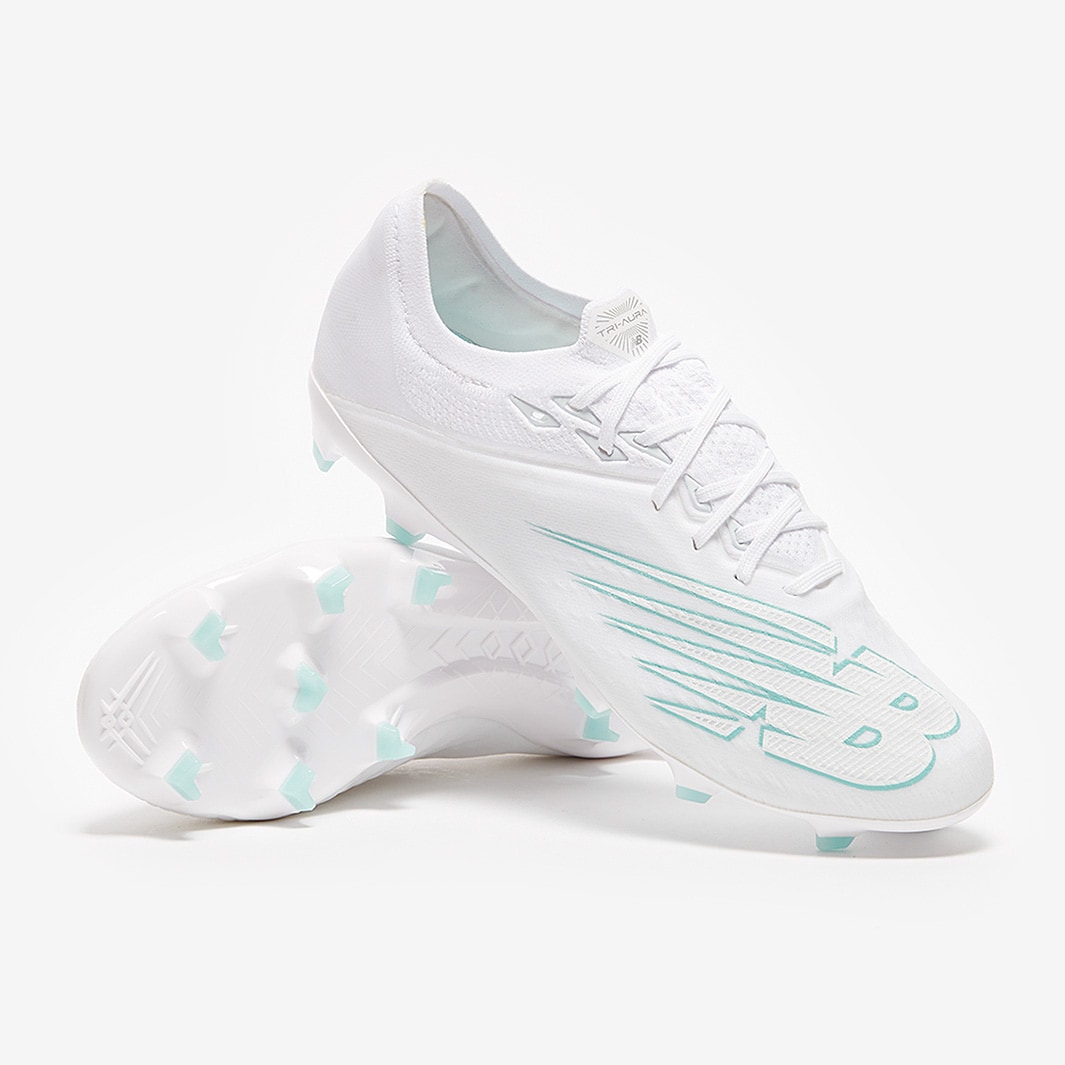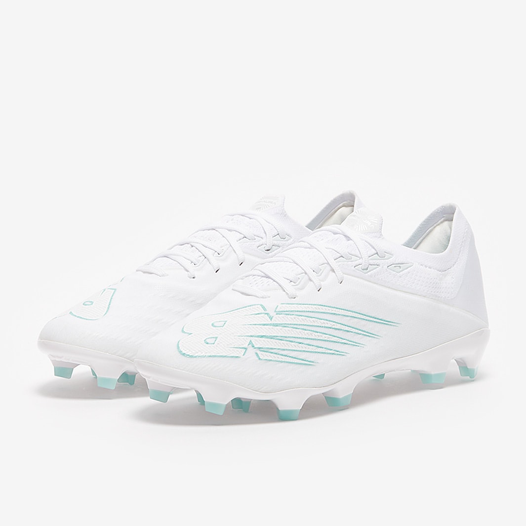 New Balance launched their Furon V6+ Pro FG football boots in White/White/Blue, featuring a refined Fit Weave upper for superior ball contact and streamlined speed.
