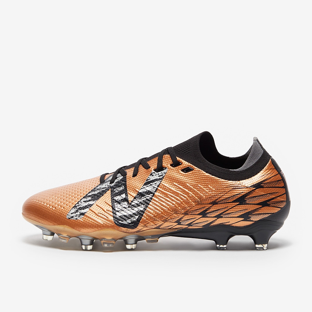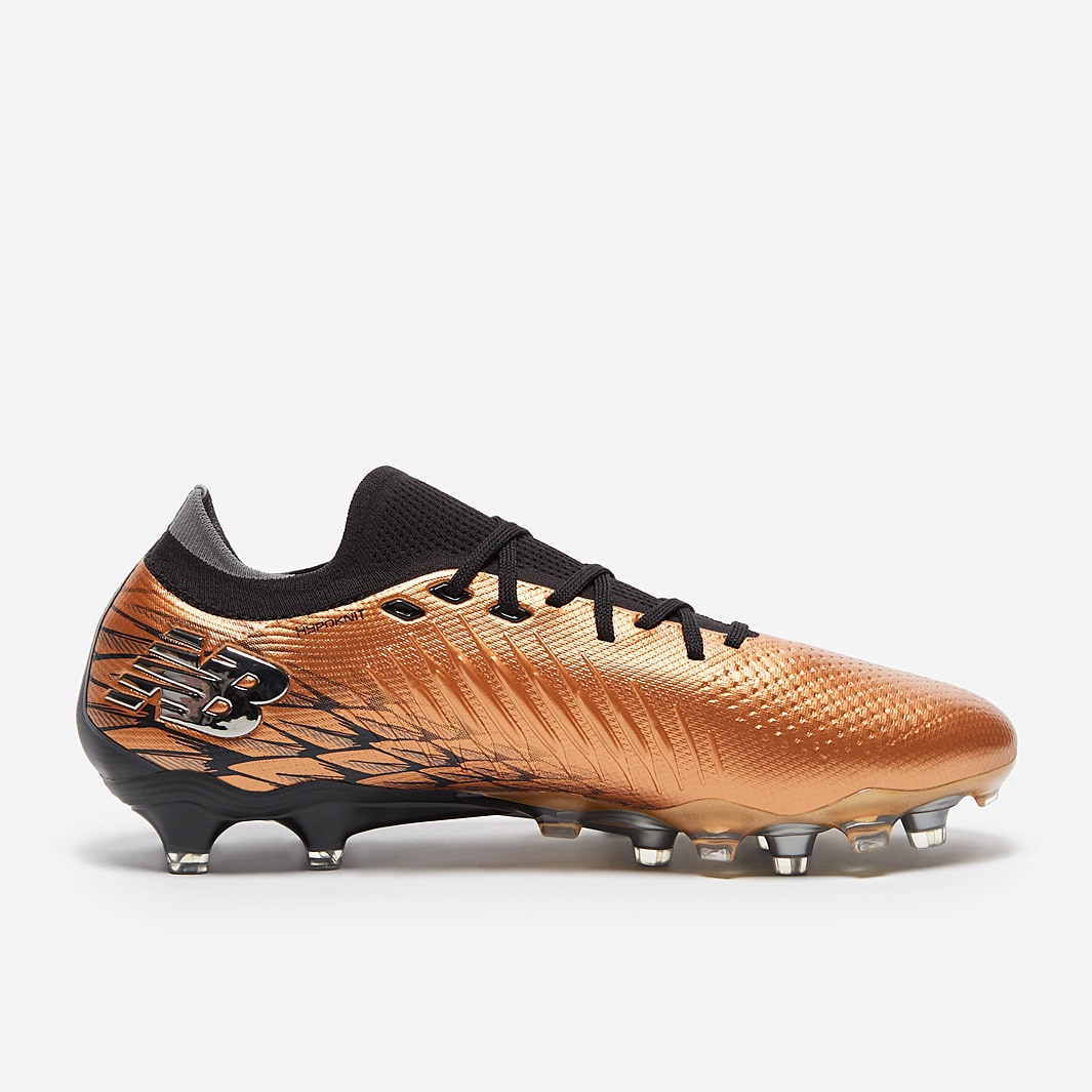 Experience the game to the fullest with the Copper/Black New Balance Tekela V4 Low Pro FG Own Now football boots, boasting a next-gen minimalist upper for heightened sensation on the ball.