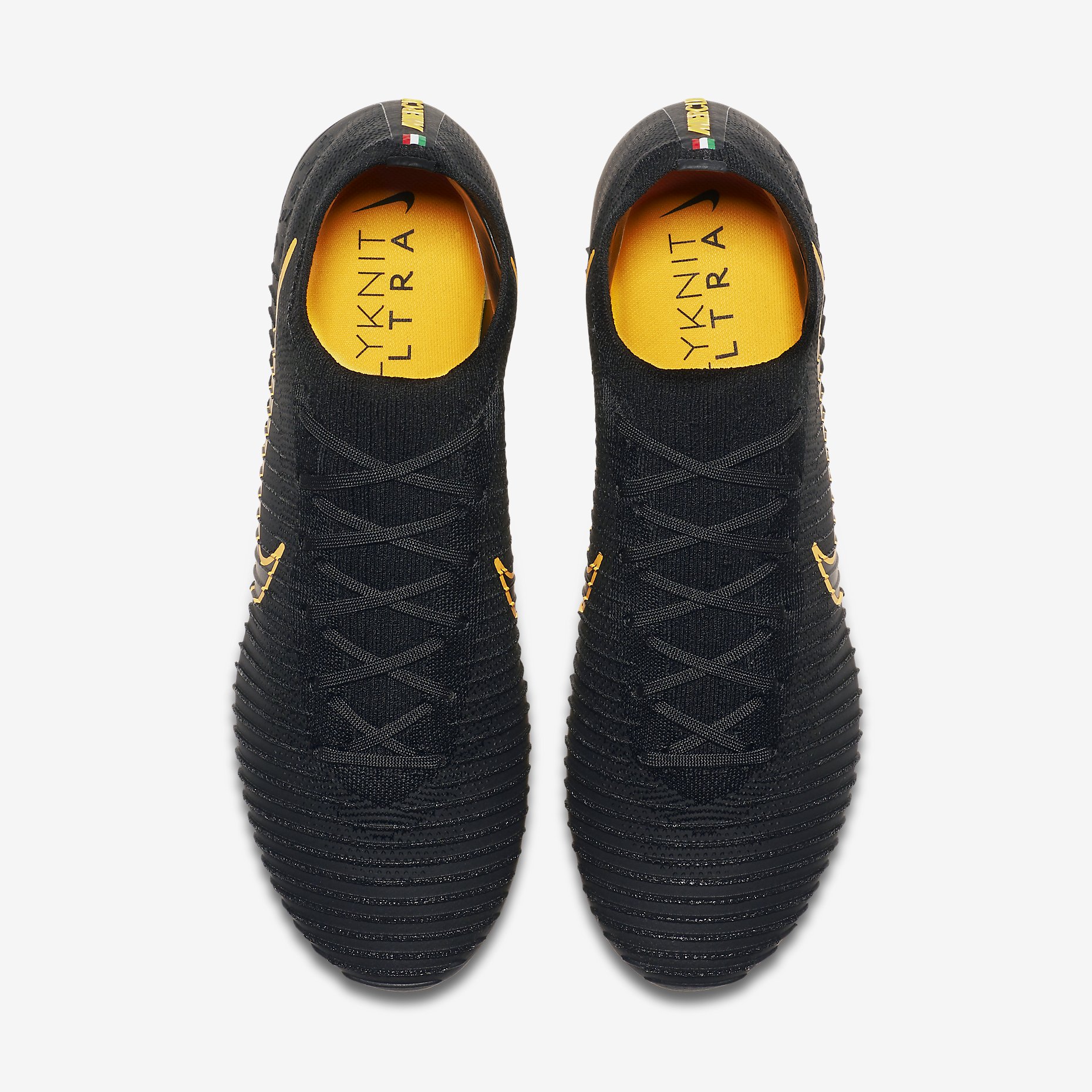 There will be 2,500 pairs of the limited-edition Nike Mercurial Ultra Flyknit Vapor available in triple-black, and 1,500 pairs available in a black/metallic gold colourway.