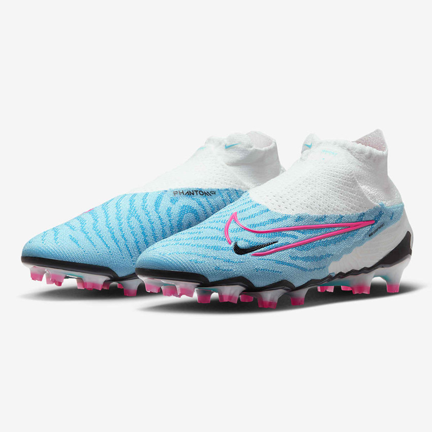 Made from revolutionary Nike Gripknit, these Nike Gripknit Phantom GX Elite Dynamic Fit FG football boots in Baltic Blue/White/Laser Blue/Pink Blast provide better touch on the ball in an intuitive design that helps enhance your precision both when striking and during close control.