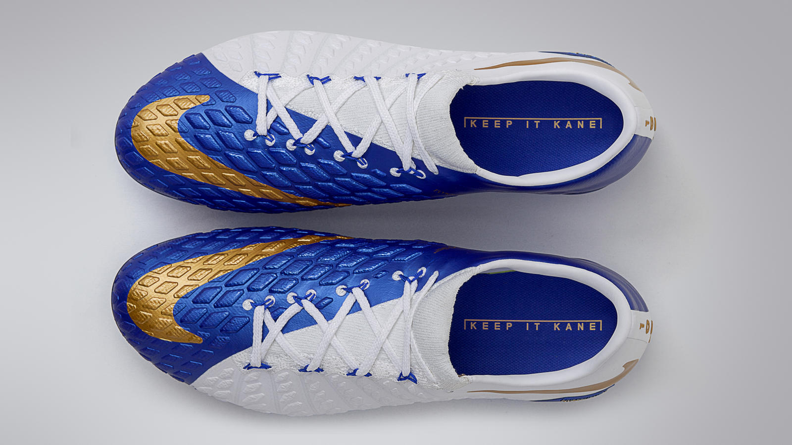 To celebrate his achievement, a special-edition Nike Hypervenom 3 HK has been produced for Kane to wear in his next match, with 100 units available to buy at a later date. A two-tone design in Kane’s preferred colours – white and blue – is highlighted by subtle golden details across the boot that herald this milestone.