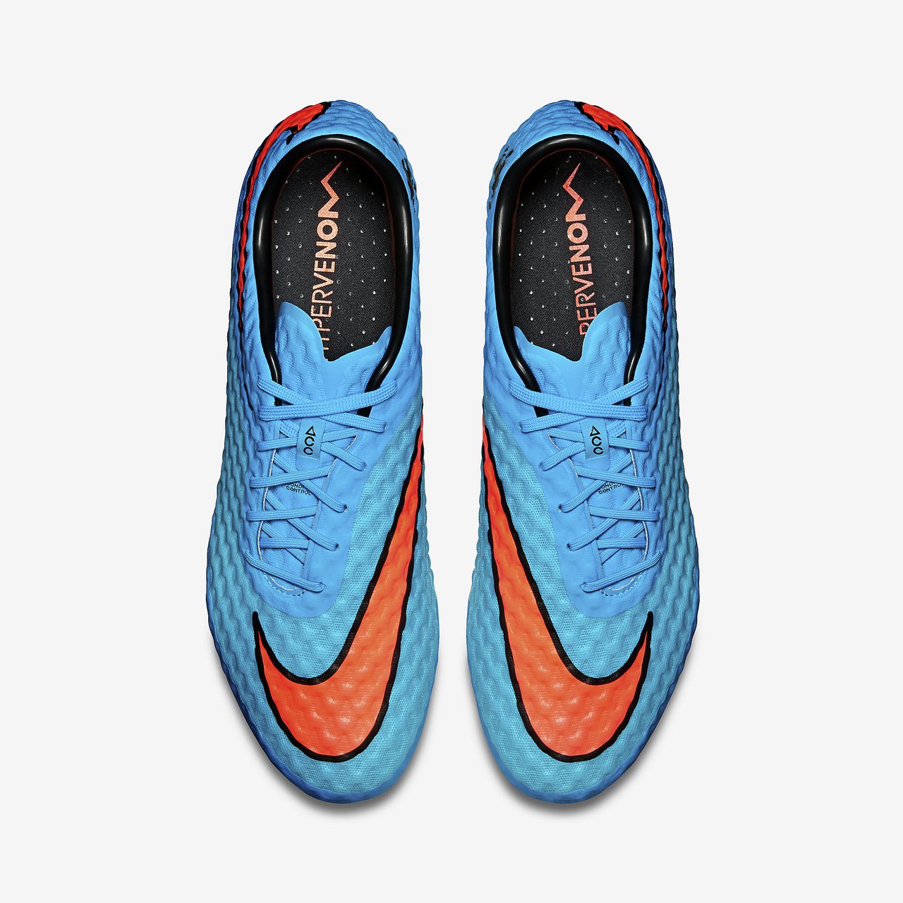 Engineered for the attacking striker, the Nike HYPERVENOM Phantom has a split-toe plate to maximise agility and a one-piece NikeSkin upper for a barefoot-like touch on the ball. NikeSkin technology fits closer to your foot for more natural touch. The one-piece upper design eliminates unnecessary layers—using only thin PU film and performance mesh—to reduce weight and bring your feet closer to the ball.