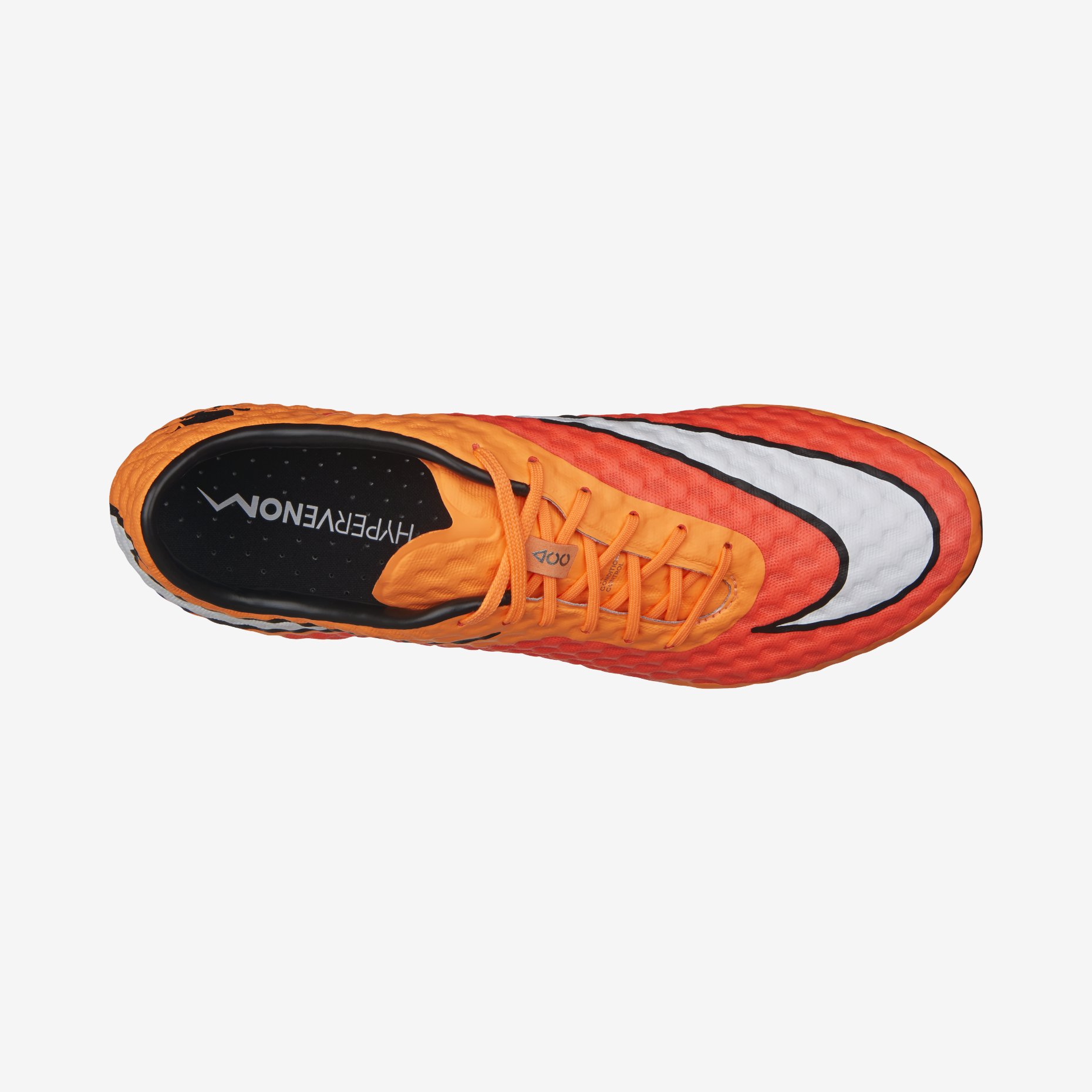Engineered for the attacking striker, the HYPERVENOM Phantom has a split-toe plate to maximise agility and a one-piece NikeSkin upper for a barefoot-like touch on the ball.
