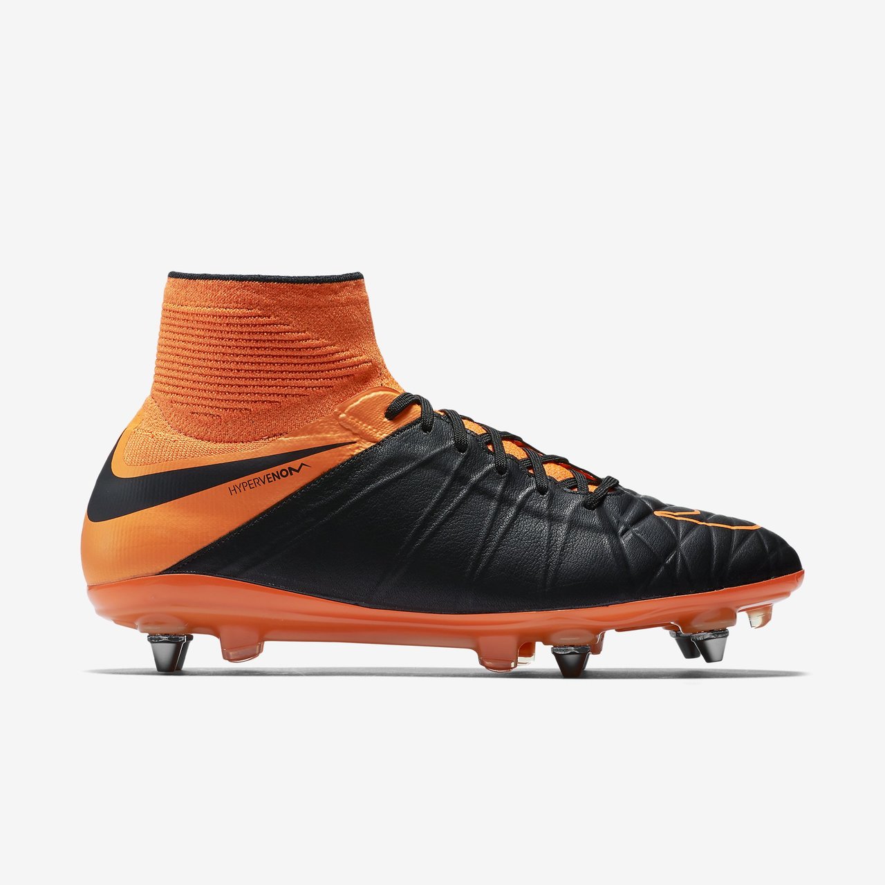Constructed with an unprecedented fusion of Flyknit and seamless leather, the Nike Hypervenom Phantom II Leather SG-PRO Men's Soft-Ground Football Boot is designed to help the attacking goal scorer maintain exceptional ball control while making swift cuts on the field.